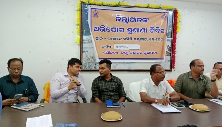 ନୂଆପଡା(ବିରବଲ ପ୍ରଧାନ): ବୋଡେ଼ନ ପଞ୍ଚାୟତ ସମିତି ସମ୍ମିଳନୀ କକ୍ଷ ଠାରେ ନୂଆପଡା ଜିଲ୍ଲାପାଳ ମଧୁସୂଦନ ଦାସ ଏବଂ ଜିଲ୍ଳା ଆରକ୍ଷୀ ଅଧିକ୍ଷକ ଗୁଣ୍ଡାଲା ରେଡ୍ଡୀ ରାଘବେନ୍ଦ୍ରଙ୍କ ଜିଲ୍ଲାସ୍ତରୀୟ ମିଳିତ ଅଭିଯୋଗ ଶୁଣାଣି ଶିବିର ଅନୁଷ୍ଠିତ ହୋଇଯାଇଛି । ଏହି ଶିବିରରେ ଜିଲ୍ଲାପାଳ, ଏସପି ଓ ପ୍ରଶାସନର ବରିଷ୍ଠ ଅଧିକାରୀମାନେ ଯୋଗଦେଇ ଅଭିଯୋଗ ସବୁର ସମାଧାନ କରିଥିଲେ । ଆଜିର ମୋଟ 49 ଗୋଟି ଅଭିଯୋଗ ମଧ୍ୟରୁ 43 ଗୋଟି ବ୍ୟକ୍ତିଗତ ଅଭିଯୋଗ ଏବଂ 6 ଗୋଟି ଗୋଷ୍ଠୀଗତ ଅଭିଯୋଗର ଶୁଣାଣି ପ୍ରଶାସନ କରିଛନ୍ତି । ଏହିସବୁ ଅଭିଯୋଗ ଉପରେ ଅତିଶିଘ୍ର ସମାଧାନ କରିବାକୁ ବିଭାଗୀୟ ଅଧିକାରୀମାନଙ୍କୁ ଜିଲ୍ଲାପାଳ ନିର୍ଦ୍ଦେଶ ଦେଇଥିଲେ । ଆଜିର ଅଭିଯୋଗ ଶୁଣାଣି ଶିବିରରେ ଜିଲ୍ଲାପାଳ ଓ ଆରକ୍ଷୀ ଅଧିକ୍ଷକଙ୍କ ସହିତ ଡିଏଫଓ ଅଜିଜ ଖାନ, ଅତିରିକ୍ତ ଜିଲାପାଳ ସୁବାଷ ଚନ୍ଦ୍ର ରଇତା, ଜିଲ୍ଲା ଉନ୍ନୟନ ଅଧିକାରୀ ଲମ୍ବୋଦର ଧରୁଆ, ଉପ ଜିଲ୍ଲାପାଳ ଯୋଗେନ୍ଦ୍ର ମାଝୀ, ସିଡିଏମଓ ଡ଼ଃ ଧରଣୀଧର ସେନାପତି ଶୁଣାଣିରେ ଭାଗ ନେଇଥିଲେ l ବୋଡେ଼ନ ବିଡ଼ିଓ ପ୍ରିୟରଞ୍ଜନ କୁମାର, ତହସିଲଦାର ସରିତା ଗୁପ୍ତା ସହଯୋଗ କରିଥିଲେ l ଜିଲ୍ଳା ଶ୍ରମ ଅଧିକାରୀ ରବୀନ୍ଦ୍ର ବାର୍ଲା, ଜିଲ୍ଳା ସମାଜ ମଙ୍ଗଳ ଅଧିକାରିଣୀ ସଂଗୀତା ପାତ୍ର, ଜିଲ୍ଳା ମଙ୍ଗଳ ଅଧିକାରୀ ଦିପ୍ତିମନ୍ତ ଭୋଇ, ଜିଲ୍ଳା ଯୋଗାଣ ଅଧିକାରୀ ପ୍ରଦ୍ୟୁମ୍ନ କୁମାର ରାଉତରାୟ,ଏଲଡିଏମ ସୀତାରାମ ମେହେର, ଜିଲ୍ଳା ମୁଖ୍ୟ କୃଷି ଅଧିକାରୀ ବାବୁଲି ଚରଣ ସେଠି, ଉଦ୍ୟାନ କୃଷି ଉପନିର୍ଦ୍ଦେଶକ ହୃଷିକେଶ ଚାନ୍ଦ ହାଁସଦା, ଜିଲ୍ଲା ଶିକ୍ଷା ଅଧିକାରୀ କରୁଣାକର ଭୁଏ, ଜିଲ୍ଳା ପ୍ଳାନିଙ୍ଗ ଅଧିକାରୀ ଅଙ୍କିତ ମହାକୁର, ଜିଲ୍ଳା ସୂଚନା ଓ ଲୋକ ସମ୍ପର୍କ ଅଧିକାରୀ ବିଦ୍ୟାପତି ପଣ୍ଡାଙ୍କ ସମେତ ସମସ୍ତ ଜିଲ୍ଲାସ୍ତରୀୟ ଅଧିକାରୀ, ବିଭିନ୍ନ ବିଭାଗର ଇଞ୍ଜିନିୟର, ବିଦ୍ୟୁତ ବିଭାଗ ଓ ବ୍ଲକ ସ୍ତରୀୟ ଅଧିକାରୀ ଏବଂ କର୍ମଚାରୀ ଉପସ୍ଥିତ ଥିଲେ । ଏହି ଅବସରରେ ଜିଲ୍ଲାପାଳ ପ୍ରକାଶ କରିଥିଲେ ଯେ ଭବିଷ୍ୟତରେ ଏହି ଅଭିଯୋଗ ଶୁଣାଣି ପ୍ରକ୍ରିୟାକୁ ଆହୁରି ଲୋକାଭିମୁଖୀ କରି ପ୍ରଶାସନ ଲୋକମାନଙ୍କ ଦ୍ୱାରରେ ପହଞ୍ଚିବ l ଏହା ସହିତ ଜିଲ୍ଲାର ମୁଖ୍ୟ ସମସ୍ୟା ପ୍ରବାସୀ ଶ୍ରମିକ ସମସ୍ୟାର ଆଶୁ ସମାଧାନ କରିବା ଉପରେ ଜିଲ୍ଲାପାଳ ଗୁରୁତ୍ୱାରୋପ କରିଛନ୍ତି l ଶିବିର ପରେ ବୋଡେ଼ନ ବ୍ଳକର ସାମ୍ବାଦିକମାନେ ଜିଲ୍ଲାପାଳଙ୍କୁ ସୌଜନ୍ୟମୂଳକ ସାକ୍ଷାତ କରିଥିଲେ l