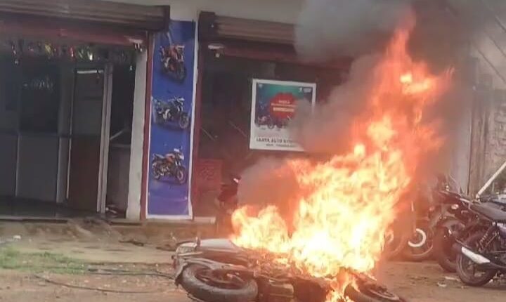 କୋକସରା(ତ୍ରିଲୋକ୍ୟ ବେଶ୍ରା): କୋକସରା ଥାନା ଅନ୍ତର୍ଗତ ମୋଟେର ଚାର ବାହାଲ ଜାତୀୟ ରାଜପଥ ୨୬ ନିକଟରେ ଥିବା ବଜାଜ ଶୋ ରୁମକୁ ବାଇକ ସର୍ଭିସିଂ କରିବାକୁ ନେଇ ଆସିଥିଲେ । ହେଲେ କୌଣସି କାରଣ ବଶତଃ ହଠାତ ସଟ ସର୍କିଟ ହୋଇ ବାଇକ ହୁତୁହୁତୁ ହୋଇ ଜଳିଗଲା । ନିଆଁ ଲିଭାଇବାକୁ ଶୋ ରୁମର କର୍ମଚାରୀମାନେ ଚେଷ୍ଟା କରିଥଲେ ମଧ୍ୟ ନିଆଁକୁ ଆୟତ୍ତ କରି ପାରି ନଥିଲେ । ଘଟଣା ସମ୍ପର୍କରେ କୋକସରା ଅଗ୍ନିଶମ ବିଭାଗ କର୍ମଚାରୀଙ୍କୁ ଖବର ଦେବାପରେ ଅଗ୍ନିଶମ ଓଆଇସି ପ୍ରଶାନ୍ତ କୁମାର ବାଘଙ୍କ ନେତୃତ୍ୱରେ କର୍ମଚାରୀ ପହଞ୍ଚି ନିଆଁକୁ ଆୟତ୍ତ କରିଥିବା ସୂଚନା ମିଳିଛି । ତେବେ ବାଇକଟି ଘନଶ୍ୟାମ ମାଝୀଙ୍କ ବୋଲି ଜଣାପଡିଛି।