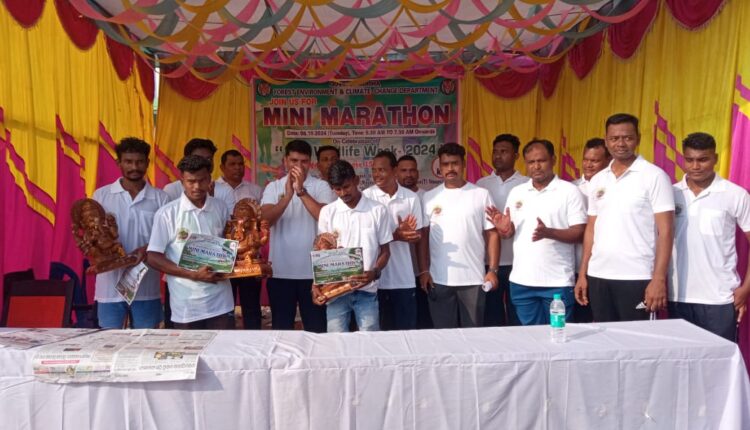 ଓଡିଶା ସରକାରଙ୍କ ଜଙ୍ଗଲ ପରିବେଶ ଓ ଜଳବାୟୁ ପରିବର୍ତ୍ତନ ବିଭାଗ ଅତିଥିମାନେ ବନ୍ୟପ୍ରାଣୀଙ୍କୁ ସୁରକ୍ଷା ଦେବାର ନୈତିକ ଦାୟିତ୍ୱ ମଣିଷ ସମାଜର ବୋଲି ମତବ୍ୟକ୍ତ କରିଥିଲେ l ଆଜିର ଛାତ୍ରଛାତ୍ରୀମାନଙ୍କୁ ବନ୍ୟଜନ୍ତୁଙ୍କ ପ୍ରତି ଆକର୍ଷିତ କରିବାକୁ ପଡିବ l ବାଘମାମୁଁ ବିଲୁଆନନା ମାନଙ୍କୁ ସେମାନେ ଜାଣିଲେ ସେମାନଙ୍କ ସୁରକ୍ଷା ପ୍ରତି ଆଗଭର ହେବେ l ଜଙ୍ଗଲ ତଥା ବନ୍ୟଯନ୍ତୁ ସଂରକ୍ଷିତ ରହିଲେ ଜୈବ ବିବିଧତାର ସୁରକ୍ଷା ହୋଇପାରିବ ବୋଲି ମତବ୍ୟକ୍ତ କରିଥିଲେ l ଏହି “ମିନି ମାରାଥନ” କାର୍ଯ୍ୟକ୍ରମରେ ପ୍ରଥମ ପୁରସ୍କାର ପାଇଥିଲେ ନେତ୍ରମଣି ଶବର, ଦ୍ଵିତୀୟ ପୁରସ୍କାର ସ୍ଵାଧୀନ ଭାଟି, ତୃତୀୟ ପୁରସ୍କାର ଗିରିଧାରୀ ବାଗ l ଶେଷରେ ଏହି ତିନି ଜଣଙ୍କୁ ପ୍ରତିଯୋଗିଙ୍କୁ ଶ୍ରୀ ଗଣେଶଙ୍କ କାଠ ତିଆରି ମୂର୍ତ୍ତି ପୁରସ୍କାର ଦେଇ ସମ୍ମାନିତ କରାଯାଇଥିଲା l