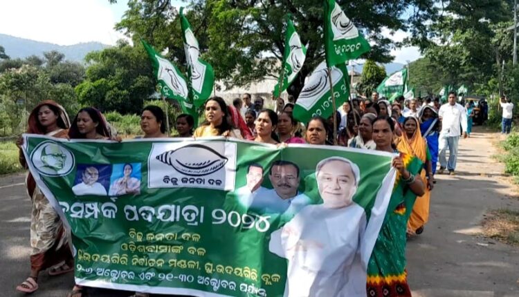ଅନୁସନ୍ଧାନ ଭାରତ(ବ୍ୟୁର): ବିଜୁ ଜନତାଦଳ ସଭାପତି ନବୀନ ପଟ୍ଟନାୟକଙ୍କ ଆହ୍ୱାନ କ୍ରମେ ପ୍ରତ୍ୟେକ ବର୍ଷ ଅକ୍ଟୋବର 2 ଗାନ୍ଧୀ ଜୟନ୍ତୀ ଠାରୁ ଅକ୍ଟାବର 11 ଜୟପ୍ରକାଶ ଜୟନ୍ତୀ ପର୍ଯ୍ୟନ୍ତ ସାରା ରାଜ୍ୟରେ ବିଜେଡିର ଜନସମ୍ପର୍କ ପଦଯାତ୍ରା ଅନୁଷ୍ଠିତ ହୋଇଥାଏ l ସେହିଭଳି ବୁଧବାର ଦିନ କଳିଙ୍ଗା ଡିଏଭି ଛକ ଠାରୁ କଳିଙ୍ଗା ଛକ ହୋଇ କଳିଙ୍ଗା ବିଜୁ କଲ୍ୟାଣ ମଣ୍ଡପ ପର୍ଯ୍ୟନ୍ତ ସ୍ଥାନୀୟ ବ୍ଲକ ଓ ଏନଏସି ତରଫରୁ ଏକ ବିରାଟ ଜନସମ୍ପର୍କ ପଦ ଯାତ୍ରା ଅନୁଷ୍ଠିତ ହୋଇଯାଇଛି I ଆଜିର ଏହି ଜନ ସମ୍ପର୍କ ପଦ ଯାତ୍ରାରେ ପୂର୍ବତନ ବିଧାୟକ ସାଲୁଗା ପ୍ରଧାନଙ୍କ ନେତୃତ୍ୱରେ ହୋଇଥିବା ବେଳେ ବରିଷ୍ଠ ବିଜେଡି ନେତା କମଳ କାନ୍ତ ପାଣ୍ଡେ, ସୁବାଷ ଚନ୍ଦ୍ର ମହାରଣା, ଜିଲ୍ଲା ପରି ଷଦ ସଭ୍ୟା ଲିଲିମା ପ୍ରଧାନ, ଏନ.ଏ.ସି ଅଧ୍ୟକ୍ଷା ସୁଶ୍ରୀ ଦେବସ୍ମିତା ଶତପଥି, ଉପାଧ୍ୟକ୍ଷ ସନ୍ତୋଷ କୁମାର ବାଘ, ବ୍ଲକ ସଭାପତି ଲିଙ୍ଗରାଜ କଁହର, ଏନଏସି ସଭାପତି ପି.ସଞ୍ଜୀବ କୁମାର ପାତ୍ର, ଉଦୟନାଥ ନାୟକ, ଅନିଲ କୁମାର ଦଳବେହେରା, ସମସ୍ତ ସରପଞ୍ଚ, ସମିତି ସଭ୍ୟ, ଏନଏସି କାଉନସିଲର, ବିଜେଡିର ବରିଷ୍ଠ କର୍ମକର୍ତ୍ତା ବୃନ୍ଦ ଏହି ପଦ ଯାତ୍ରାରେ ସାମିଲ ହୋଇଥିଲେ I