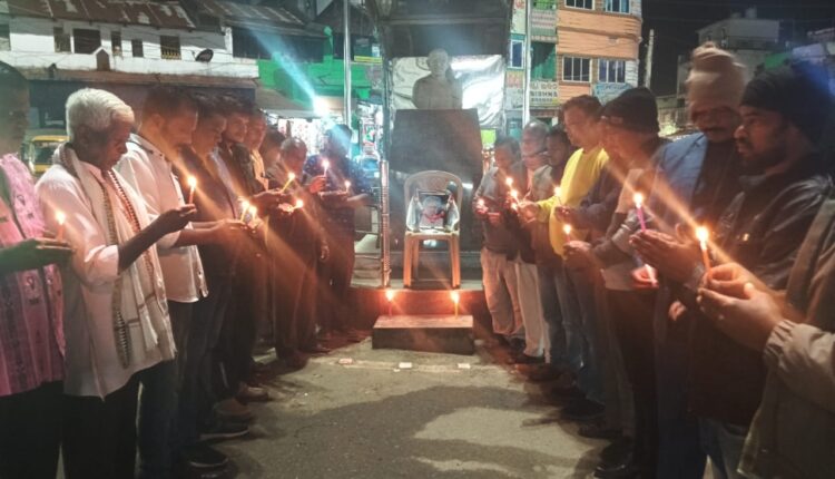 ଅନୁସନ୍ଧାନ ଭାରତ(ବ୍ୟୁର): ଭାରତର ପୂର୍ବତନ ପ୍ରଧାନମନ୍ତ୍ରୀ ସ୍ବର୍ଗତଃ ମନମୋହନ ସିଂଙ୍କ ବିୟୋଗରେ ସ୍ଥାନୀୟ ଗାନ୍ଧୀ ଛକ ଠାରେ ପୂର୍ବତନ ନଗର କଂଗ୍ରେସ ସଭାପତି ଗଗନ କୁମାର ପ୍ରଧାନଙ୍କ ନେତୃତ୍ୱରେ ଘୁ.ଉଦୟଗିରି କଂଗ୍ରେସ ପକ୍ଷରୁ ଶୋକ ସଭା ଅନୁଷ୍ଠିତ ହୋଇଯାଇଛି l ଏହି ଶୋକ ସଭାରେ ବରିଷ୍ଠ କଂଗ୍ରେସ କର୍ମୀ ରମାକାନ୍ତ ମହାପାତ୍ର, ଶରତ ଚନ୍ଦ୍ର ଚୌଧୁରୀ, ପ୍ରକାଶ ଦାଶ, ଗୋପାଳ ପାତ୍ର, ଶଶାନନ୍ଦ ପ୍ରଧାନ, ଅଜିତ ନାୟକ, ରାଜେଶ ସାହୁ, ଟାର୍ଜନ ସାହୁ, ଚିତ୍ତରଞ୍ଜନ ସାହୁ, ଶୁଭ୍ରମନ୍ୟୁ ନାୟକ, ଅଶୋକ ପାତ୍ର, ସଞ୍ଜୟ ଦିଗାଲ, ନିଥ ନାୟକଙ୍କ ସମେତ ବହୁ ସଂଖ୍ୟକ କଂଗ୍ରେସ ଦଳର ନେତା ଓ କର୍ମୀ ଯୋଗ ଦେଇ ପୂର୍ବତ୍ତନ ପ୍ରଧାନମନ୍ତ୍ରୀଙ୍କ ଅମର ଆତ୍ମାର ସଦଗତି କାମନା ସହ ସ୍ମୃତି ଚାରଣ କରିଥିଲେ I ତାଙ୍କରି ବିୟୋଗରେ ଭାରତ ଜଣେ ବିଶିଷ୍ଟ ଅର୍ଥନିତିଜ୍ଞଙ୍କୁ ହରାଇଲା ବୋଲି ଆଲୋଚନା ହୋଇଥିଲା I ସ୍ବର୍ଗତ ମନମୋହନ ସିଂଙ୍କ ତୈଳ ଫୋଟ ଚିତ୍ରରେ ପୁଷ୍ପ ଦେଇ କ୍ୟାଣ୍ଡେଲ ଜାଳି ଏକ ମିନିଟ ନୀରବ ପ୍ରାର୍ଥନା ସହ ଶ୍ରଦ୍ଧା ସୁମନ ଅର୍ପଣ କରାଯାଇଥିଲା I