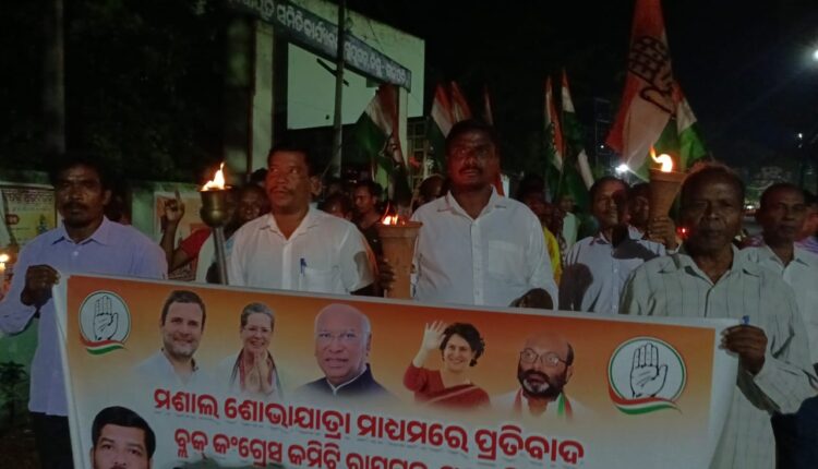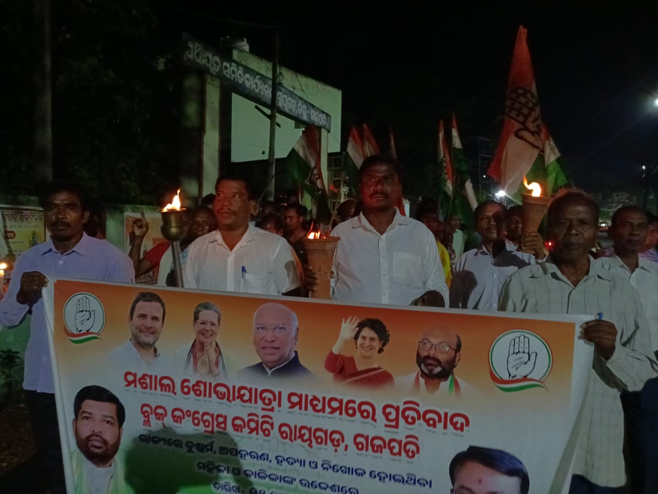 ରାୟଗଡ(ଟିକି ଲିମା): ଗଜପତି ଜିଲ୍ଲା ରାୟଗଡ଼ ବ୍ଲକରେ ପିସିସି ସଭାପତି ଏବଂ ମୋହନା ବିଧାୟକ ଦାଶରଥି ଗମାଙ୍ଗଙ୍କ ନେତୃତ୍ଵ ଶିବ ମନ୍ଦିର ଠାରୁ ବ୍ଲକ୍ କାର୍ଯ୍ୟାଳୟ ପର୍ୟ୍ୟନ୍ତ ଏକ ଶାନ୍ତି ପୂର୍ଣ୍ଣ ସଭା ଯାତ୍ରା ବାହାରି ଥିଲା । ନାରୀ ନିର୍ଯାତନା, ନାରୀ ବଳାତ୍କାର, ନାରୀଙ୍କ ସୁରକ୍ଷା ଏବଂ ବିଧାନ ସଭାରେ କଂଗ୍ରେସ ବିଧାୟକମାନଙ୍କୁ ମାଡ଼ ମାରିବା ଘଟଣାକୁ ନେଇ ସଭାପତି ମୂର୍ସୁତା ମଣ୍ଡଳଙ୍କ ନେତୃତ୍ୱରେ ଶାନ୍ତି ପୂର୍ଣ୍ଣ ଭାବେ କଂଗ୍ରେସ ର କେଣ୍ଡେଲ ଶୋଭା ଯାତ୍ରା ଅନୁଷ୍ଠିତ ହୋଇ ଥିଲା । ଏହି ସଭା ଯାତ୍ରାରେ ବିଧାୟକ ପ୍ରତିନିଧି ରାମଚନ୍ଦ୍ର ନାୟକ, ନୂଆଗଡ ନୀରଳ ସିଂ, ରାୟଗଡ଼ ବ୍ଲକ୍ କଂଗ୍ରେସ ସମ୍ପାଦକ କୁମୁଦ ସ୍ୱାଲସିଂ, ରାୟଗଡ଼ ବ୍ଲକ୍ କଂଗ୍ରେସର କର୍ମୀମାନେ ଉପସ୍ଥିତ ଥିଲେ ।
