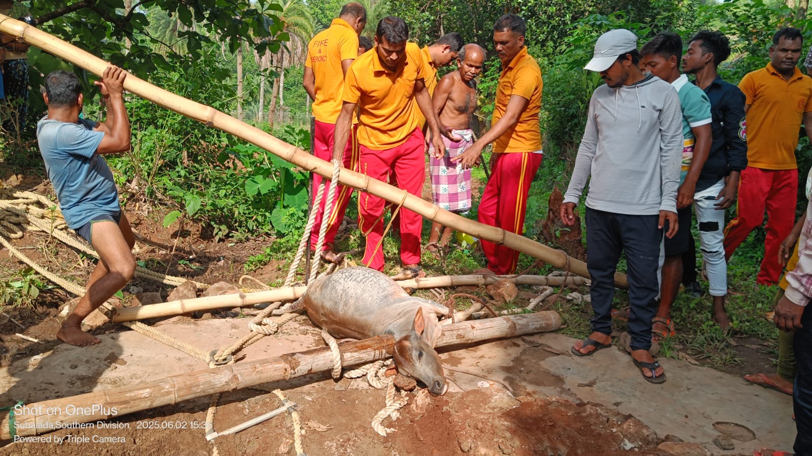 ରା.ଉଦୟଗିରି(ଆକାଶ ଦାସ): ଗଜପତି ଜିଲ୍ଲା ରା.ଉଦୟଗିରି ବ୍ଲକ ସୁବଲଡା ଗ୍ରାମପଞ୍ଚାୟତ ସ୍ଥିତ ଲରଡ଼ା ଗ୍ରାମରେ ଆଜି ସକାଳେ ଏକ କୂଅରେ ବାଛୁରୀ ଟିଏ ପଡ଼ିଥିବା ଗ୍ରାମବାସୀ ଦେଖିବାକୁ ପାଇଥିଲେ l ଲରଡ଼ା ଗ୍ରାମର ଏକ ବିଲ ମଝିରେ ଏକ ପଥର କୂଅ ଏବଂ ସେହି କୂଅ ଉପରେ ଛାତ ପକେଇ ଏକ ନଳକୂପ ବସାଯାଇଛି l ନଳକୂପରୁ ପାଣି ନବାହାରିଲେ ସେହି ଛାତରେ ଛୋଟ ବାଟ ଦେଇ ବାଲ୍ଟି ସାହାଯ୍ୟରେ ପାଣି ବାହାର କରି ପିଇବା ପାଣି ରୂପେ ବ୍ୟବହାର କରୁଥିଲେ ଲରଡ଼ା ଗ୍ରାମବାସୀ l ଆଜି ସକାଳେ ପାଣି ପାଇଁ ଯାଇଥିବା ବେଳେ କୂଅ ଭିତରୁ ବାଛୁରୀର ରଡି ଶୁଭିଥିଲା । କୂଅ ଭିତରେ ଗୋଟେ ବାଛୁରୀ ପଡ଼ିଥିବା ଦେଖି ସ୍ଥାନୀୟ ଗଣମାଧ୍ୟମ ଦ୍ୱାରା ରା. ଉଦୟଗିରି ଅଗ୍ନିଶମ ବିଭାଗ ଅଧିକାରୀ ଶ୍ରୀଧର ସେଠୀଙ୍କୁ ଖବର ଦେଇଥିଲେ l ଖବର ପାଇ ଲରଡ଼ା ଗ୍ରାମରେ ଆଗ୍ନିକ କର୍ମଚାରୀ ପହଞ୍ଚି ଉଦ୍ଧାର କାର୍ଯ୍ୟ ଆରମ୍ଭ କରିଥିଲେ l ଦୀର୍ଘ ତିନି ଘଣ୍ଟା ଧରି ସ୍ଥାନୀୟ ଯୁବକମାନଙ୍କ ସହାୟତାରେ ଉଦ୍ଧାର କାର୍ଯ୍ୟ କରିଥିଲେ l କିନ୍ତୁ ଦୁର୍ଭାଗ୍ୟର ବିଷୟ ବାଛୁରୀଟି ଜୀବିତ ଉଦ୍ଧାର ହୋଇପାରିଲା ନାହିଁ l ଉଦ୍ଧାର କାର୍ଯ୍ୟ ସମୟରେ ସୁବଲଡା ଗ୍ରାମପଞ୍ଚାୟତ ସରପଞ୍ଚ ବିରୋଜା ମଣ୍ଡଳ , ଗ୍ରାମସେବକ ମନୋଜ କୁମାର ପଣ୍ଡା , ସମିତି ସଭ୍ୟ ଗଙ୍ଗାଧର ରଇତଙ୍କ ସହ ଲରଡ଼ା ଗ୍ରାମର ସମସ୍ତ ଯୁବକ ଯୁବତୀ ପୁରୁଷ ମହିଳା ଉପସ୍ଥିତ ଥିଲେ l