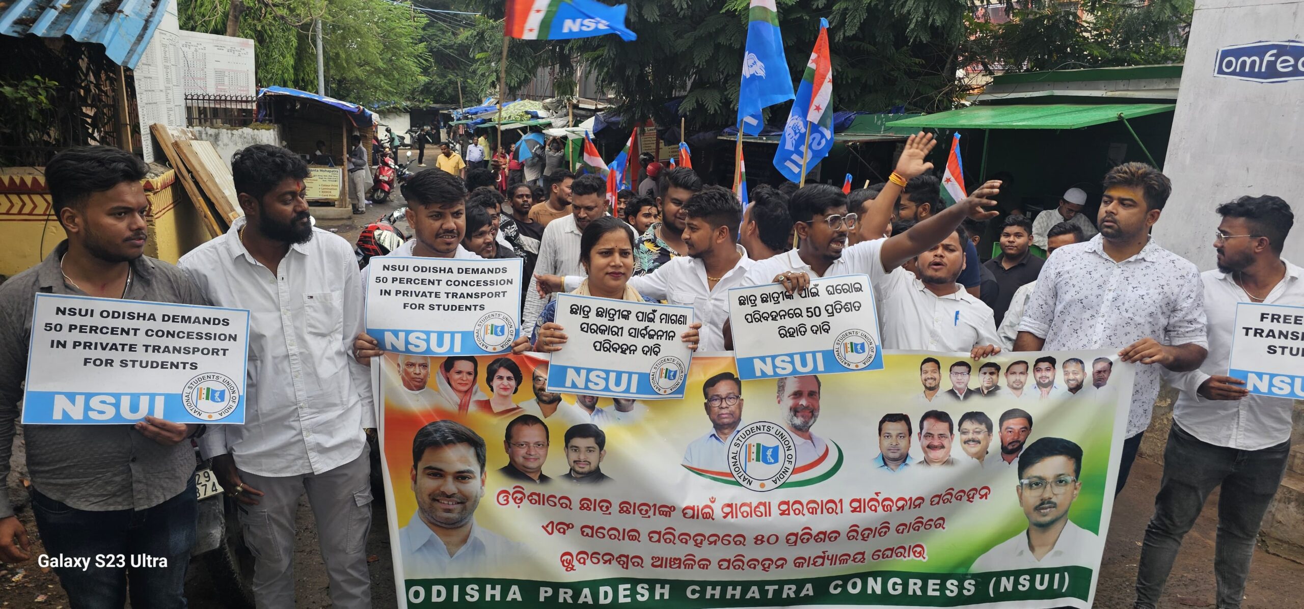 ରାଜ୍ୟର ଛାତ୍ରଛାତ୍ରୀ ମାନଙ୍କ ପାଇଁ ମାଗଣା ସରକାରୀ ସାର୍ବଜନୀନ ପରିବହନ ଏବଂ ଘରୋଇ ପରିବହନରେ ୫୦ ପ୍ରତିଶତ ରିହାତି ଦାବିରେ ଛାତ୍ର କଂଗ୍ରେସ ପକ୍ଷରୁ ରାଜ୍ୟର ସମସ୍ତ ଆଂଚଳିକ ପରିବହନ କାର୍ଯ୍ୟାଳୟ ଘେରାଉ…..