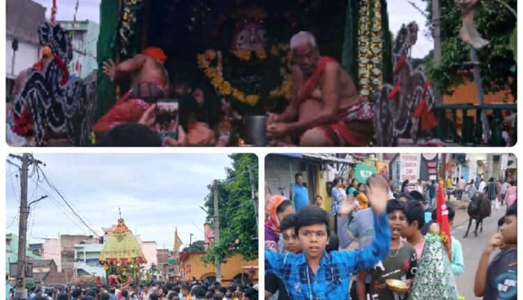 ଅନୁସନ୍ଧାନ ଭାରତ(ବ୍ୟୁର): କନ୍ଧମାଳ ଜିଲାର ଘୁ.ଉଦୟଗିରି ସହରରେ ମହାପ୍ରଭୁଙ୍କ ରଥଯାତ୍ରା ମହାଆଡମ୍ବରରେ ଅନୁଷ୍ଠିତ ହୋଇଛି । ଏଥିପାଇଁ ଜଗନ୍ନାଥ ମନ୍ଦିର ପରିଚାଳନା କମିଟି ତରଫରୁ ବ୍ୟାପକ ପ୍ରସ୍ତୁତି କରାଯାଇ ନିତୀ ନିର୍ଘଣ୍ଟ କରାଯାଇ ଥିଲା । ସକାଳୁ ରଥ ପ୍ରତିଷ୍ଠା କରାଯିବା ସହିତ ଗେଲାସାହୀ ତ୍ରୀନାଥ ମନ୍ଦିର ତରଫରୁ ଟାହିଆ ପ୍ରସ୍ତୁତ କରି ପଟୁଆରରେ ଅଣା ଯାଇଥିଲା । ପରେ ତିନିଠାକୁରକୁଂ ପହଣ୍ଡି ବିଜେ କରାଯିବା ପରେ ଛେରାପହଁରା ପାଇଁ କେ.ରାମାରାଓ ପାତ୍ରକୁଂ ନିମନ୍ତ୍ରଣ କରାଯିବା ସହିତ ତିନି ରଥ ରେ ଛେରାପହଁରା କରାଯାଇଥିଲା । ପ୍ରଥମେ ବଳଭଦ୍ର କଂ ରଥକୁ ଟଣା ଯାଇ ମାଉସୀ ମା ମନ୍ଦିର ସମ୍ମୁଖରେ ପହଞ୍ଚିବା ପରେ ମା ଶୁଭଦ୍ରାଙ୍କ ରଥକୁ କେବଳ ମହିଳା ମାନେ ଟାଣି ଥିଲେ । ଶେଷରେ ଜଗନ୍ନାଥକଂ ରଥକୁ ଶ୍ରଧାଳୁ ଟାଣି ମାଉସୀ ମା ମନ୍ଦିର ସମ୍ମୁଖରେ ଅଟକି ଥିଲା । ପରିଚାଳନା କମିଟି ତରଫରୁ ସଭାପତି ବିନୋଦ ବିହାରୀଙ୍କ ଦାଶତତ୍ୱାବଧାନରେ ଉପ ସଭାପତି ମନୋରଞ୍ଜନ ପତି, ସଂପାଦକ ଅରୁଣ କୁମାର ଷଡଗୀଂ, କୋଷାଧଖ୍ୟ ଅଶୋକ କୁମାର ପାତ୍ର, ଦଣ୍ଡପାଣି ପାଢୀ, କାଳୁ ଚରଣ ପଣ୍ଡା, ରାଜେନ୍ଦ୍ର ମହାପାତ୍ର, ଭଗବାନ ପଣ୍ଡା, ସଞୟ ଆଚାର୍ଯ୍ୟ, ସନ୍ତୋଷ ଆଚାର୍ଯ୍ୟ, ପ୍ରତାପ ପଣ୍ଡା, ସାନ୍ତନୁ ଆଚାର୍ଯ୍ୟ, ଉମା ସାମନ୍ତରାୟ, ସୋମୁ ପତି, ବାଳକ୍ରୁଷ୍ନ ପଣ୍ଡା, ସୀମାଞ୍ଚଳ ଦାଶ, ଅଚୁତ ପଣ୍ଡା, ଚନ୍ଦ୍ର କାନ୍ତ ପଣ୍ଡା, ମାନସ ପଣ୍ଡା କଂ ସହିତ ପୁରୋହିତ ସୁର୍ୟା ନାରାୟଣ ଆଚାର୍ଯ୍ୟ ସହଯୋଗ କରିଥିଲେ । ଟ୍ରାଫିକ ସମସ୍ୟାକୁ ଦ୍ରୁଷ୍ଟିରେ ରଖି ଘୁ.ଉଦୟଗିରି ପୁଲିସ ପକ୍ଷରୁ ବ୍ୟାପକ ବ୍ୟବସ୍ଥା କରାଯାଇ ଥିବା ବେଳେ ଥାନା ଅଧିକାରୀ ବିଜୟ କୁମାର ସ୍ୱାଇଁକଂ ପ୍ରତ୍ୟକ୍ଷ ତତ୍ୱାବଧାନରେ ସୁରକ୍ଷା ବ୍ୟବସ୍ଥା କଡାକଡି କରାଯାଇଥିଲା । ସ୍ୱଛାସେବୀ ଯୁବକମାନକଂ ସହିତ ଅଗ୍ନି ସେବାଶମ ବିଭାଗ କର୍ମଚାରୀମାନେ ରଥ ଟଣାରେ ସାହାଯ୍ୟ କରିଥିଲେ ।