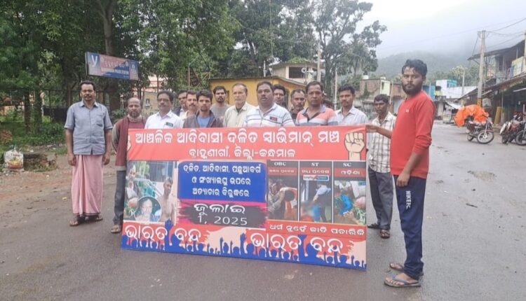ପାରଳାଖେମୁଣ୍ଡି(ପ୍ରବୀଣ କୁମାର ଲିମ୍ମା): ଗଜପତି ଜିଲ୍ଲାର ସମସ୍ତ ବ୍ଲକରେ ଭାରତ ମୁକ୍ତି ମୋର୍ଚ୍ଚା, ଓଡ଼ିଶା ଦଳିତ ମହାସଭା ଏବଂ ଅଖିଳ ଭାରତ ଆଦିବାସୀ ମହାସଭା ତରଫରୁ ଭାରତ ବନ୍ଦର ବଡ ପ୍ରଭାବ ଦେଖିବାକୁ ମିଳିଛି । ଆଜି ୧ ଜୁଲାଇ ୨୦୨୫, ମଙ୍ଗଳବାର ଦିନ ଭାରତୀୟ ଗଣତନ୍ତ୍ର ଏବଂ ଜନସାଧାରଣଙ୍କ ସାମ୍ବିଧାନିକ ମୌଳିକ ଅଧିକାରର ସୁରକ୍ଷା ନିମନ୍ତେ ତଥା ଦେଶରେ ନ୍ୟାୟ ପ୍ରସ୍ଥାପିତ କରିବା ପାଇଁ “ଭାରତ ବନ୍ଦର” ଡ଼ାକରା ଦିଆଯାଇ ଅଛି । ଏହି ଭାରତ ବନ୍ଦ ଭାରତ ମୁକ୍ତି ମୋର୍ଚ୍ଚା, ରାଷ୍ଟ୍ରୀୟ ଖ୍ରୀଷ୍ଟିୟାନ ମୋର୍ଚ୍ଚା, ରାଷ୍ଟ୍ରୀୟ କିଶାନ ମୋର୍ଚ୍ଚା ଏବଂ ବହୁଜନ ସମାଜର ଅନ୍ୟାନ୍ୟ ସଂଗଠନର ମିଳିତ ତତ୍ତ୍ବାବଧାନରେ ଭାରତ ବନ୍ଦ କରାଯାଇ ଅଛି । ଏହି ଭାରତ ବନ୍ଦର ୯ ଗୋଟି ଦଫା ଦାବୀ ପୂରଣ କରିବା ନିମନ୍ତେ ଭାରତ ବନ୍ଦ ଡାକରା ଦିଯାଇଥିଲା l ସେ ଗୁଡ଼ିକ ହେଲା (୧) ଇଭିଏମ୍ କୁ ହଟାଇ ବାଲାଟ ପେପର ମାଧ୍ୟମରେ ସମସ୍ତ ନିର୍ବାଚନ ପାରଦର୍ଶିତାର ସହିତ କରିବା l (୨) କେନ୍ଦ୍ର ସରକାରଙ୍କ ଦ୍ବାରା ଓବିସିଙ୍କର ଜାତିଭିତ୍ତିକ ଜନଗଣନା ସହିତ ସମସ୍ତ ବର୍ଗର ଜାତିଭିତ୍ତିକ ଜନ ଗଣନା କରି ସେମାନଙ୍କର ସଂଖ୍ୟା ଅନୁପାତରେ ସମସ୍ତ କ୍ଷେତ୍ରରେ ପ୍ରତିନିଧିତ୍ବ ପ୍ରଦାନ କରିବା l ମୂଳନିବାସୀ ଖ୍ରୀଷ୍ଟିୟାନ ସମ୍ପ୍ରଦାୟ ଉପରେ ଦେଶବ୍ୟାପୀ ହେଉଥିବା ଉତ୍ପୀଡ଼ନ, ଅନ୍ୟାୟ ଏବଂ ଧାର୍ମିକ ଆଧାରରେ ଭେଦଭାବ ବିରୁଦ୍ଧରେ, ବିକାଶ ନାମରେ ଆଦିବାସୀମାନଙ୍କୁ ଜଳ, ଜଙ୍ଗଲ ଓ ଜମିରୁ ବେଦଖଲ କରିବା ସହିତ ସେମାନଙ୍କର ସଂସ୍କୃତି ଏବଂ ଅସ୍ତିତ୍ବକୁ ସମାପ୍ତ କରିବାର ଷଡ଼ଯନ୍ତ୍ର ବିରୁଦ୍ଧରେ ଭାରତ ବନ୍ଦ ଡ଼ାକରା ଦିଆଯାଇ ଥିବା ବେଳେ ଜିଲ୍ଲାପାଳକଙ୍କ କାର୍ଯ୍ୟଳୟ ସମ୍ମୁଖରେ ଏକ ବିଶାଳ ଧାରଣା ଅଖିଳ ଭାରତ ଆଦିବାସୀ ମଞ୍ଚର ଆବାହକ କେଦାର ଶବରଙ୍କ ନେତୃତ୍ୱରେ ପ୍ରଦର୍ଶନ କରାଯାଇ ଧରାକୋଟ ଘଟଣାର ଯେଉଁ ଗରିବ ଦଳିତ ଲୋକଙ୍କ ଉପରେ ବର୍ବରୋଚିତ ଆକ୍ରମଣ କରଯାଇଥିଲା ସେହି ପିଡିତ ମାନଙ୍କୁ ୨ ଏକର ସରକାରୀ ଜମି ଓ ସର୍ବନିମ୍ନ ଦଶ ଲକ୍ଷ ଟଙ୍କା ଲେଖାଏଁ ଅନୁକମ୍ପାମୂଳକ ସାହାଯ୍ୟ ପ୍ରଦାନ କରିବା ନିମନ୍ତେ ଦାବି କରି ଓଡ଼ିଶା ମୁଖ୍ୟମନ୍ତ୍ରୀଙ୍କ ଉଦ୍ଦେଶ୍ୟରେ ଜିଲ୍ଲା ପ୍ରଶାସନ ତରଫରୁ ଏକ ସ୍ମାରକପତ୍ର ପ୍ରଦାନ କରଯାଇଥିଲା l ଗଜପତି ଜିଲ୍ଲାରେ ଭାରତ ବନ୍ଦ ସମାଜସେବୀ ପ୍ରମୋଦ ନିଶାନ, ଆଚାର୍ଯ୍ୟ ଆମୋଦ କୁମାର ବର୍ଦ୍ଧନ, ଶୁସ୍ଥିର ଷଡ଼ଙ୍ଗୀ, ମନୁଏଲ୍ ଛିଞ୍ଚାନି, ଲିଭିଙ୍ଗଷ୍ଟୋନ ଗମାଙ୍ଗଙ୍କ ନେତୃତ୍ବରେ ଶାନ୍ତିପୂର୍ଣ୍ଣ ଭାବରେ ଭାରତ ବନ୍ଦ ସଫଳ ହୋଉଥିଲା ।