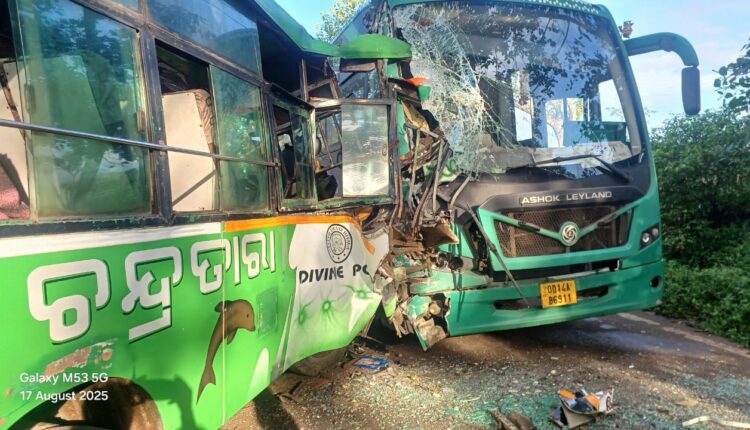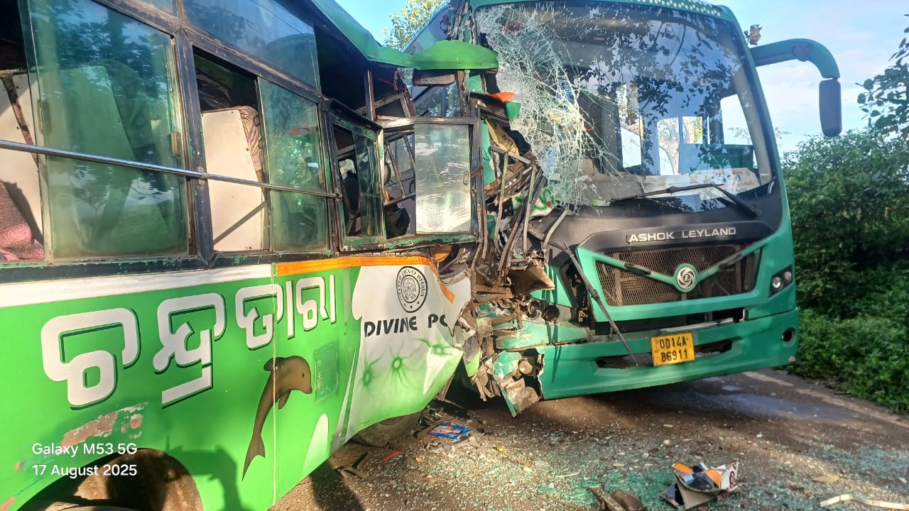 ହିଞ୍ଜିଳିକାଟୁ(ସଂସ୍କାର ପଟ୍ଟନାୟକ): ଗଞ୍ଜାମ ଜିଲ୍ଲା ଶେରଗଡ ବ୍ଲକ୍ ଧନନ୍ତର ପଞ୍ଚାୟତ କାର୍ଯ୍ୟାଳୟ ସମ୍ମୁଖରେ OSRTC ବସ ସହ ଘରୋଇ ବସର ମୁହାଁମୁହିଁ ଧକ୍କା I ଘରୋଇ ବସର ଡ୍ରାଇଭର ଗୁରୁତର ଆହତ ହୋଇ ଥିବା ବେଳେ ଅଳ୍ପକେ ବର୍ତ୍ତିଲେ ଦଶ ଯାତ୍ରୀ l ସୂଚନା ଅନୁସାରେ OSRTC ବସଟି ୧୦ ଜଣ ଯାତ୍ରୀଙ୍କୁ ନେଇ ଶେରଗଡରୁ ହିଞ୍ଜିଳିକାଟୁ ଦେଇ ପୁରୀ ଅଭିମୁଖେ ଯାଉଥିବା ବେଳେ ଗୋବିନ୍ଦପୁରରୁ ଶେରଗଡ ଅଭିମୁଖେ ଆସୁଥିବା ଘରୋଇ ବସ ସହ ଧନନ୍ତର ପଞ୍ଚାୟତ କାର୍ଯ୍ୟାଳୟ ପାଖରେ ଦୁଇ ବସର ମୁହାଁ ମୁହିଁ ଧକ୍କା ହୋଇଥିଲା l ଦୁର୍ଘଟଣାରେ ଘରୋଇ ବସର ଡ୍ରାଇଭର ନୀଳାଞ୍ଚଳ ବେହେରା ଗୁରୁତର ହୋଇଥିବା ବେଳେ OSRTC ବସର ଡ୍ରାଇଭର ସାମାନ୍ୟ ଆହତ ହୋଇଛନ୍ତି ଏବଂ ଅଳ୍ପକେ ବର୍ତ୍ତିଛନ୍ତି ବସରେ ଥିବା ୧୦ ଜଣ ଯାତ୍ରୀ l ସ୍ଥାନୀୟ ଲୋକେ ପହଞ୍ଚି ଗୁରୁତର ଡ୍ରାଇଭରକୁ ଉଦ୍ଧାର କରିବା ସହ ଚିକିତ୍ସା ପାଇଁ ହିଞ୍ଜିଳି ମେଡିକାଲରେ ଭର୍ତ୍ତି କରିଛନ୍ତି l ଘଟଣା ସ୍ଥଳରେ ଶେରଗଡ ପୁଲିସ ପହଞ୍ଚି ଦୁଇ ବସକୁ ଜବତ କରିବା ଘଟଣାର ତଦନ୍ତ କରୁଛି l