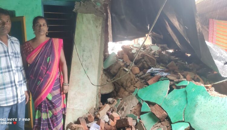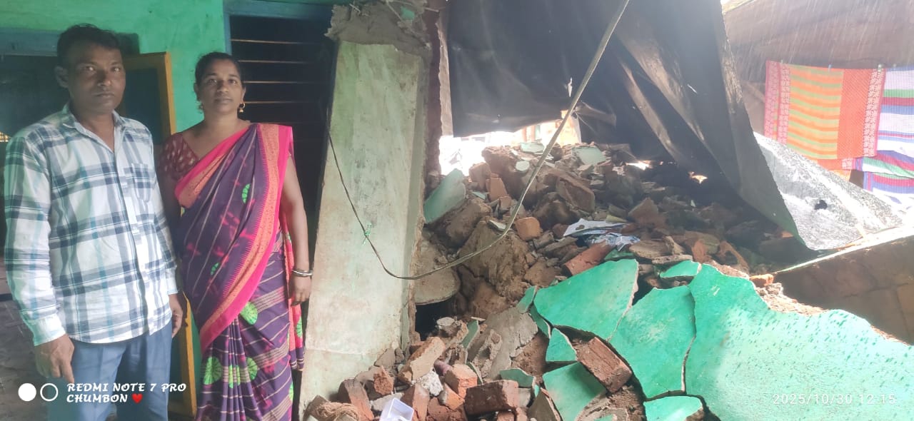 ପାରଳାଖେମୁଣ୍ଡି(ପ୍ରବୀଣ କୁମାର ଲିମା): ମନ୍ଥାର ପ୍ରଭାବ ଗୁମ୍ମା ବ୍ଲକର ଅନେକ ଗ୍ରାମରେ ଦେଖିବାକୁ ମିଳିଛି l ମନ୍ଥା ଦୁର୍ବଳ ହୋଇଥିଲେ ମଧ୍ୟ କିଛି ପ୍ରଭାବ ଛାଡ଼ି ଯାଇଛି l ଲଗାଣ ବର୍ଷା ଲାଗି ରହିଥିବା ଯୋଗୁଁ ଗାଇବା ପଞ୍ଚାୟତ ଗାଇବା ଗ୍ରାମର ଅଂଶୁମାନ କର(47)ଙ୍କ ଘର ଭୁଷୁଡ଼ି ଯାଇ ଥିବା ସୁଚନା ମିଳିଛି l ଟିଣ ଘର ମାଟି କାନ୍ଥ ହେଇଥିବା ଯୋଗୁଁ ଲଗାଣ ବର୍ଷାରେ ପାଣି କାନ୍ଥରେ ଜମି ଜମି କାନ୍ଥ ଭୁଷୁଡ଼ି ଯାଇଛି l ହେଲେ ଏକ ବଡ଼ ଦୁର୍ଘଟଣାରୁ ଅଳ୍ପକେ ବର୍ତ୍ତି ଯାଇଛନ୍ତି ପରିବାର ଲୋକେ l ଏହାକୁ ନେଇ ଅଂଶୁମାନ କର ରାଜସ୍ପ ନିରୀକ୍ଷକ ପାଖରେ ଘର ଭାଙ୍ଗିଯିବା ସମ୍ପର୍କରେ ଜଣାଇଛନ୍ତି l ରାଜସ୍ପ ନିରୀକ୍ଷକ ଓ ତହସିଲଦାର ଶରତ ଶବରଙ୍କୁ ଜଣାଇଲା ପରେ କ୍ଷତିଗ୍ରସ୍ତ ପରିବାରଙ୍କୁ ପ୍ରଥମେ ପାଲ ଦେବା ବ୍ୟବସ୍ଥା କରାଯାଇଛି l ଘର ଭୁଷୁଡ଼ି ଯିବା ପରେ ପରିବାର ଲୋକେ ହନ୍ତସନ୍ତ ହୋଇ ଭାଙ୍ଗିପଡ଼ି ଥିବା କହିଛନ୍ତି l