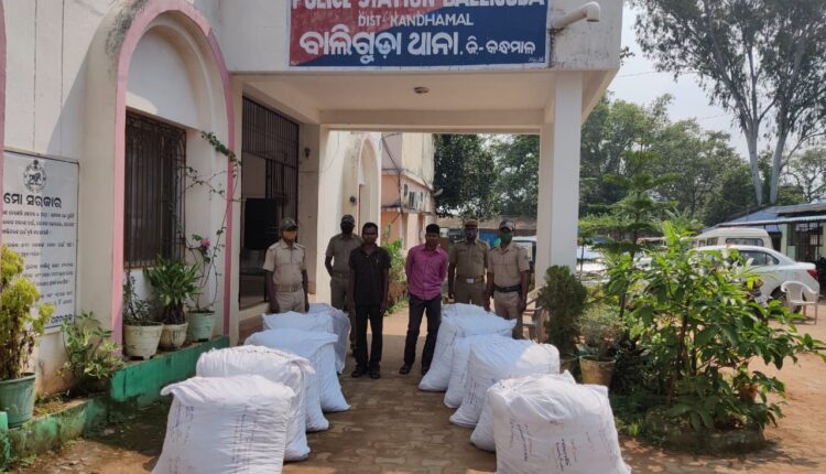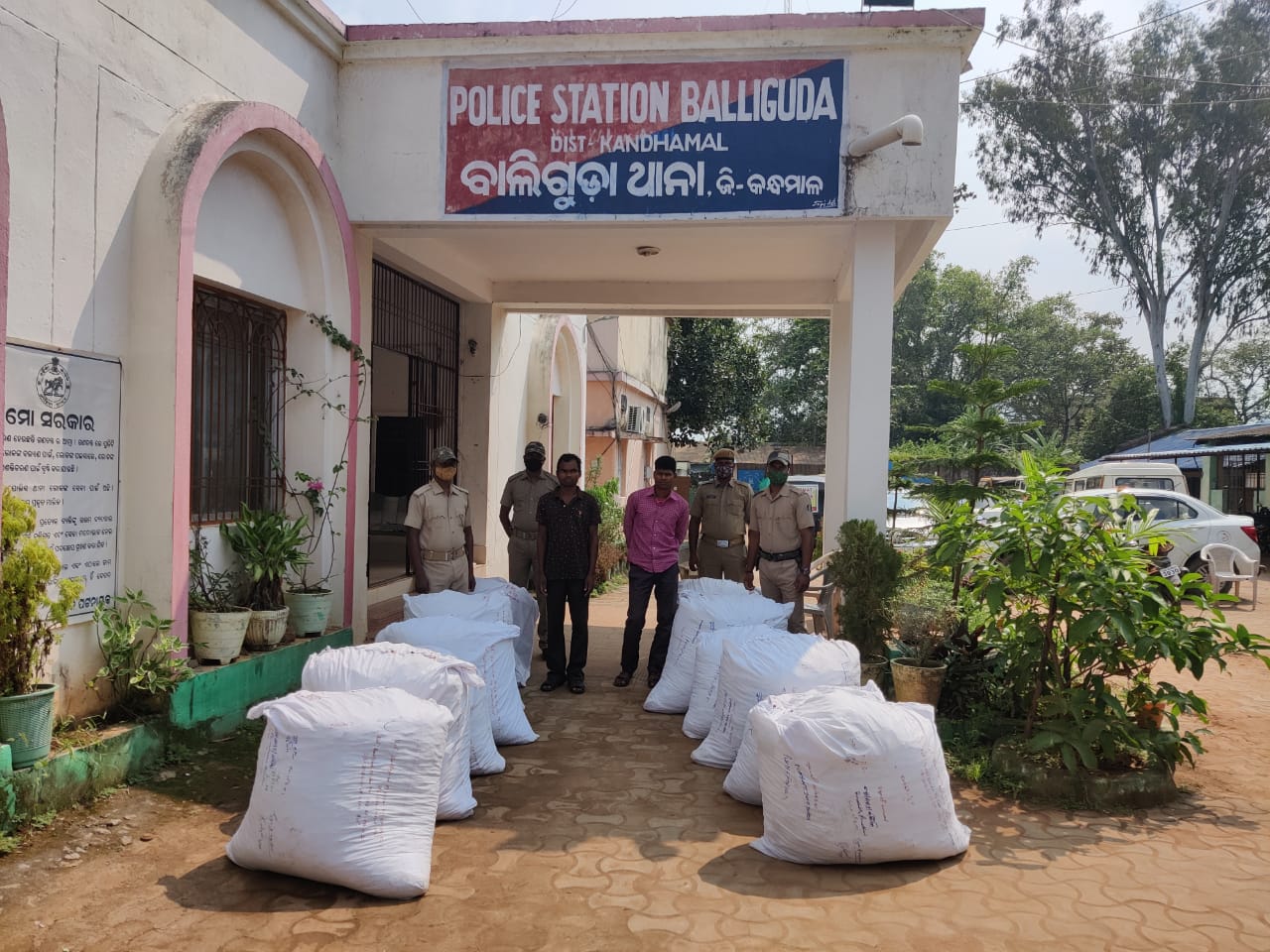 ଅନୁସନ୍ଧାନ ଭାରତ(ବ୍ୟୁର): ପୁଣି ଥରେ ବାଲିଗୁଡା ପୁଲିସିକୁ ମିଳିଛି ବଡ଼ ସଫଳତା I ଗତକାଲି ରାତିରେ କନ୍ଧମାଳ ଜିଲ୍ଲା ବାଲିଗୁଡା ଥାନା ରେବିଙ୍ଗିଆ ଗ୍ରାମ ସଲାକିଆ ଠାରେ ଚଢ଼ାଉ କରି ୫ କୁଇଣ୍ଟାଲ ୨ କେଜି ୯୫୦ ଗ୍ରାମ ଗଞ୍ଜେଇ ଜବତ କରିବା ସହ ୨ ଜଣକୁ ଗିରଫ କରିଛି ବାଲିଗୁଡ଼ା ପୁଲିସ I