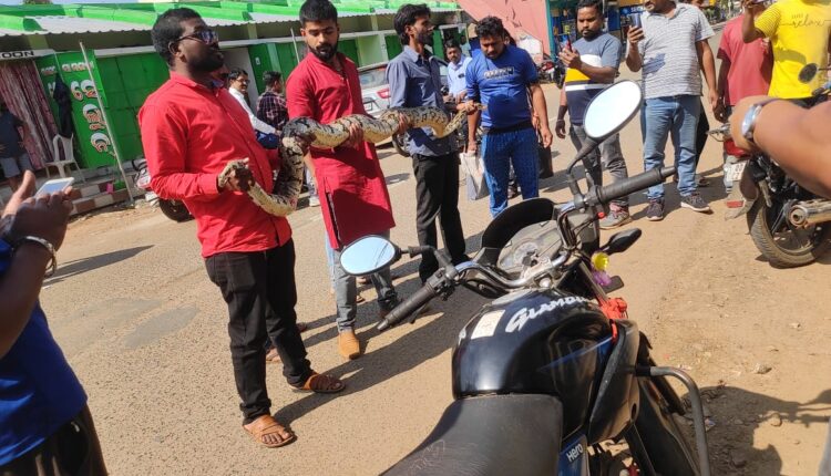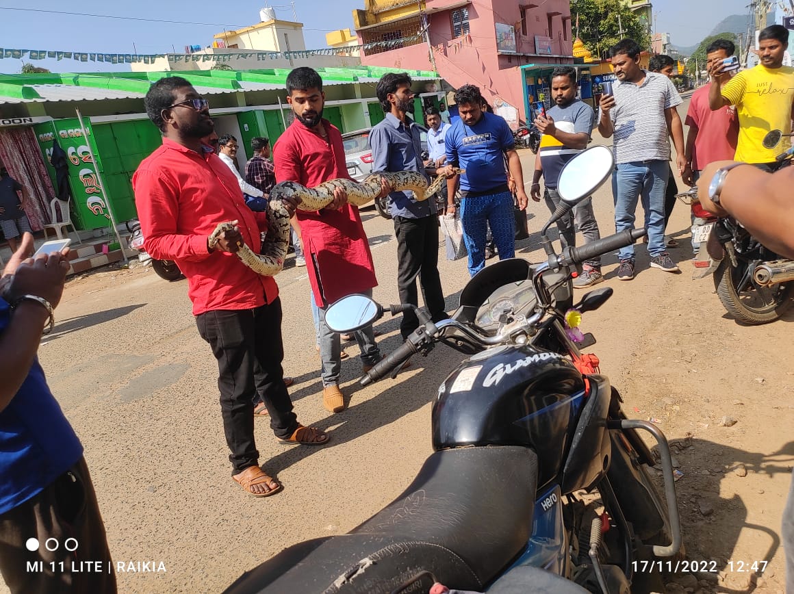 ଅନୁସନ୍ଧାନ ଭାରତ(ବ୍ୟୁର): କନ୍ଧମାଳ ଜିଲ୍ଲା ଅଧିନସ୍ଥ ଘୁ.ଉଦୟଗିରି ବିଜ୍ଞାପିତ ଅଂଚଳ ପରିଷଦର ଶ୍ରୀରାମପଦା ସ୍ଥିତ ତାରେଣୀ ମନ୍ଦିର ପରିସରରୁ ଆଜି ଏକ ୧୦ ଫୁଟିଆ ଅଜଗର ସାପକୁ ଉଦ୍ଧାର କରିଛି ଘୁ.ଉଦୟଗିରି ସ୍ନେକ ହେଲ୍ପ ଲାଇନ ଟିମ । ଆଜି ଦିନ ୧୨ଟାରେ ଖବର ପାଇ ସାଗେଂ ସାଗେଂ ସ୍ନେକ ହେଲ୍ପ ଲାଇନ ଟିମ ପହଞ୍ଚିବା ସହିତ ସର୍ଚ୍ଚ ଅପରେସନ ଆରମ୍ଭ କରି ଏକ ୧୦ ଫୁଟିଆ ବିରାଟକାୟ ଅଜଗର ସାପକୁ କାବୁ କରିବାରେ ସକ୍ଷମ ହୋଇଛି । ସ୍ନେକ ହେଲ୍ପ ଲାଇନ ଟିମ ତରଫରୁ ଜଗନ୍ନାଥ ନାୟକ, ବାବୁନା ପ୍ରଧାନ, ପ୍ରବୀଣ ନାୟକ, ଜିତେନ୍ଦ୍ର କୁମାର ଦାଶ, ରାଜୀବ ଲୋଚନ ନାୟକ ପ୍ରମୁଖ ସାମିଲ ହୋଇଥିବା ବେଳେ ଉଦ୍ଧାର କରିଥିବା ସାପକୁ କଳିଗାଂ ଜଂଗଲରେ ଛଡାଯାଇଛି ବୋଲି କହିଛନ୍ତି ସ୍ନେକ ହେଲ୍ପ ଲାଇନ ଟିମ ସଦସ୍ଯ ଜଗନ୍ନାଥ ନାୟକ । ଏହି ବିରାଟ କାୟ ସାପକୁ ଦେଖି ଆଶ୍ଚର୍ୟ୍ଯ ହୋଇଛନ୍ତି ସାଧାରଣ ଜନତା ।