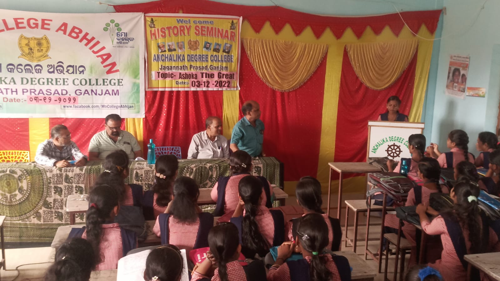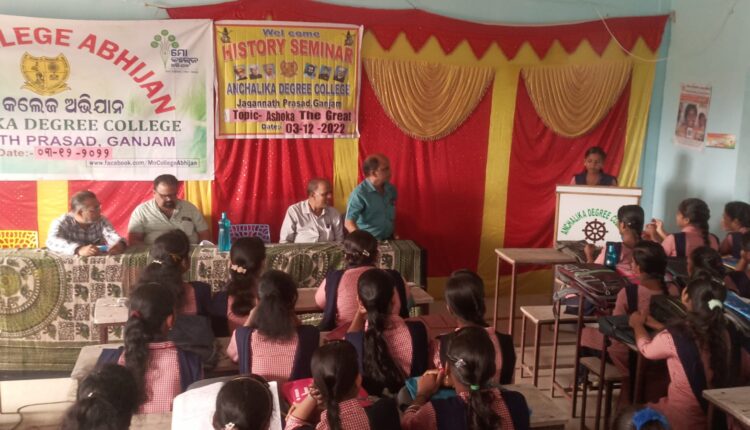 ଅନୁସନ୍ଧାନ ଭାରତ(ବ୍ୟୁର): ଗଞ୍ଜାମ ଜିଲ୍ଲା ଜଗନ୍ନାଥ ପ୍ରସାଦ ବ୍ଲକ ଅନ୍ତର୍ଗତ ଆଞ୍ଚଳିକ ଡ଼ିଗ୍ରୀ କଲେଜ ପରିସରରେ ଇତିହାସ ବିଭାଗ ତରଫରୁ ଶୀର୍ଷକ “ଅଶୋକ ଦ ଗ୍ରେଟ୍” ଉପରେ ପାଠଚକ୍ର ଅନୁଷ୍ଠିତ ହୋଇଯାଇଛି । ଏହି ପାଠଚକ୍ରକୁ କଲେଜର ଅଧ୍ୟକ୍ଷ ଶ୍ରୀଯୁକ୍ତ ସନାତନ ସାହୁ ଜଗତରନାଥ ଜଗନ୍ନାଥଙ୍କ ନିକଟରେ ପ୍ରଦୀପ ପ୍ରଜ୍ବଳନ କରି ଆନୁଷ୍ଠାନିକ ଭାବେ ଉଦଘାଟନ କରିଥିଲେ । ପ୍ରାରମ୍ଭିକ ସଙ୍ଗୀତ ଗାନ କରିଥିଲେ ସୁଶ୍ରୀ ପ୍ରିୟଙ୍କା ମହାନ୍ତି । ପାଠଚ଼କ୍ରର ସନ୍ଦର୍ଭକୁ ପାଠ କରିଥିଲେ ତୃତୀୟ ବର୍ଷ ଇତିହାସ ସମ୍ମାନର ଛାତ୍ରୀ ସୁଶ୍ରୀ ଅମ୍ବିକା ପ୍ରଧାନ । ଏହା ପରେ ଅଶୋକଙ୍କ ଉପରେ ଛାତ୍ରଛାତ୍ରୀମାନଙ୍କ ତରଫରୁ ପ୍ରଶ୍ନୋତ୍ତର କାର୍ଯ୍ୟକ୍ରମ ହୋଇଥିଲା । ଇତିହାସ ବିଭାଗୀୟ ମୁଖ୍ୟ ଡ଼ଃ ପ୍ରମୋଦ କୁମାର ଚୌଧୁରୀ ଛାତ୍ରଛାତ୍ରୀମାନଙ୍କ ମନରେ ଥିବା ସମସ୍ତ ପ୍ରଶ୍ନର ଉତ୍ତର ପ୍ରଦାନ କରିଥିଲେ । ଏହି ପାଠଚ଼କ୍ରରେ ଡ଼ଃ ବିନୋଦ କୁମାର ଦାସ, ଅଧ୍ୟାପକ ଶ୍ରୀଯୁକ୍ତ ନିରଞ୍ଜନ ଶତପଥୀ, ଶ୍ରୀଯୁକ୍ତ ବିରଞ୍ଚି ନାରାୟଣ ପ୍ରଧାନ ଅଶୋକଙ୍କ ଉପରେ ନିଜର ବକ୍ତବ୍ୟ ପ୍ରଦାନ କରିଥିଲେ । ଗ୍ରନ୍ଥାଗାରିକ ଶ୍ରୀଯୁକ୍ତ ରଘୁନାଥ ପାଣି, ଡି.ଇ.ଓ ସରୋଜ କୁମାର ନାୟକ ଓ କଲେଜର ସମସ୍ତ କର୍ମଚାରୀ କର୍ମଶାଳାକୁ ସଫଳ ରୂପାୟନ କରିବାରେ ସହଯୋଗ କରିଥିଲେ । ଶେଷରେ ଅଧ୍ୟାପକ ବିଭୁତି ଭୁଷଣ ପ୍ରଧାନ ସମସ୍ତଙ୍କୁ ଧନ୍ୟବାଦ ଅର୍ପଣ କରିଥିଲେ ।
