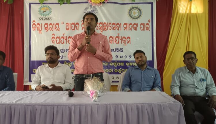 ଜାତୀୟ ବିପର୍ଯ୍ୟୟ ପରିଚାଳନା ଆନୁକୁଲ୍ୟରେ ଜିଲ୍ଲା ସ୍ତରୀୟ “ଆପଦ ମିତ୍ର” ସ୍ବେଛାସେବୀ ବିପର୍ଯ୍ୟୟ ପ୍ରଶମନ ତାଲିମ କାର୍ଯ୍ୟକ୍ରମ ଆୟୋଜିତ…