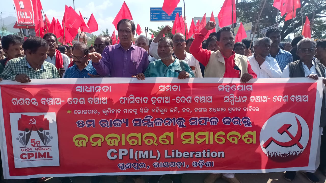 ଅନୁସନ୍ଧାନ ଭାରତ(ବ୍ୟୁର): ରାୟଗଡା ଜିଲ୍ଲା ଗୁଣପୁର ଠାରେ ସିପିଆଇଏମଏଲ ଲିବରେସନର ରାଜ୍ୟ ସ୍ତରୀୟ ଦୁଇ ଦିନିଆ ସମ୍ମିଳନି ଆରମ୍ଭ ହୋଇଛି । ଏଥି ଲାଗି ଶୋଭାଯାତ୍ରା ଏବଂ ସଭା ହୋଇଥିଲା । ବାଇପାସ ଛକ ଠାରେ ଥିବା କେମ୍ବ୍ରିଡ ନାଗଭୂଷଣଙ୍କ ପ୍ରତିମୂର୍ତ୍ତିରେ ମାଲ୍ୟାର୍ପଣ କରାଯିବା ପରେ ଶୋଭାଯାତ୍ରାରେ ସହର ପରିକ୍ରମା କରି ପୁରୁଣା ବସଷ୍ଟାଣ୍ଡ ଠାରେ ପହଁଞ୍ଚିଥିଲା । ସେଠାରେ ଏକ ଜନ ସଂକଳ୍ପ ସାଧାରଣ ସଭା ହୋଇଥିଲା । ରାଜ୍ୟ ସ୍ତରୀୟ ନେତାମାନେ ଯୋଗଦେଇ ରାଜ୍ୟ ଏବଂ କେନ୍ଦ୍ର ସରକାରଙ୍କ ବିଭିନ୍ନ ନିତି ଗୁଡିକୁ ସମାଲୋଚନା କରିବା ସହ ସଂଗଠନର ଶକ୍ତି ବୃଦ୍ଧି କରିବାକୁ ଆହ୍ବାନ ପ୍ରଦାନ କରାଯାଇଥିଲା । ଏହି ଝାଡଖଣ୍ଡର ପଲଟିବ୍ୟୁରୋ ସଦସ୍ୟ ଜନ୍ମର୍ଦ୍ଦନ ପ୍ରସାଦ ଓ ଆନ୍ଧ୍ର ପ୍ରଦେଶର ଏନ-ମୂର୍ତ୍ତି ଏବଂ ରାଜ୍ୟ ସଂପାଦକ ଯୁଧିଷ୍ଠିର ମହାପାତ୍ର, ରାଧାକାନ୍ତ ସେଠୀ, ଶ୍ରମିକ ନେତା ମହେନ୍ଦ୍ର ପରିଡା, କୃଷକ ନେତା ଅଶୋକ ପ୍ରଧାନ ସମେତ ରାଜ୍ୟ ନେତୃବୃନ୍ଦ ସହ ପ୍ରତିନିଧିମାନେ ଯୋଗଦେଇଥିଲେ । ଆଦିବାସୀମାନଙ୍କ ପାରମ୍ପାରିକ ନାଚ ଗୀତ ସହ ଏକ ବିଶାଳ ଶୋଭାଯାତ୍ରା ହୋଇଥିଲା । ଅନ୍ୟ ମାନଙ୍କ ସବିତା ବରାଳ, ମୁରଲି ବେହେରା, ମନ୍ଦାକିନି ସେଠୀ ବୃନ୍ଦାବନ ବିଡିକା, ସିପିଆଇଏମଏଲର ଜିଲ୍ଲା ସଂପାଦକ ତ୍ରିପତି ଗମାଙ୍ଗ ପ୍ରମୁଖ ଉପସ୍ଥିତ ରହିଥିଲେ ।