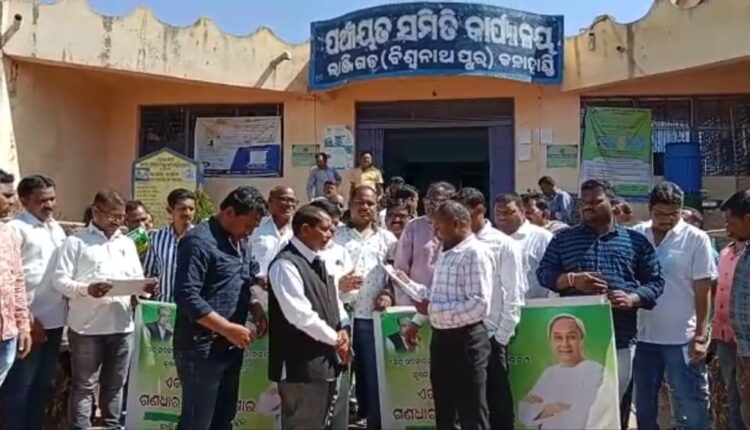 ବିଶ୍ଵନାଥ ପୁର ଠାରେ ବିଜେଡ଼ି ପକ୍ଷରୁ କେନ୍ଦ୍ର ସରକାର ବିରୁଦ୍ଧରେ ମହାମହିମ ରାଷ୍ଟ୍ରପତିଙ୍କ ଉଦ୍ଦେଶ୍ୟରେ ବିଡ଼ିଓ ଙ୍କୁ ଦାବି ପତ୍ର ପ୍ରଦାନ……