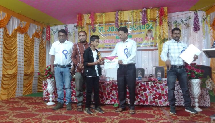 ଅନୁସନ୍ଧାନ ଭାରତ(ବ୍ୟୁର): କନ୍ଧମାଳ ଜ଼ିଲ୍ଲା ଟିକାବାଲି ସ୍ଥିତ ତେଙ୍ଗାଡା ପଥର ଠାରେ ଥିବ ସେଣ୍ଟ ଜନ ଇଂଲିଶ ମିଡିୟମର ପ୍ରଥମ ବାର୍ଷିକ ଉତ୍ସବ ବିଦ୍ୟାଳୟ ପ୍ରାଙ୍ଗଣରେ ଅନୁଷ୍ଠିତ ହୋଇଯାଇଛି l ଏହି ଅବସରରରେ ନିମନ୍ତ୍ରିତ ଅତିଥି ଦିଲୀପ କହଁର (ଟିକାବାଲି ସମିତି ଅଧକ୍ଷ), ଏବିଇଓ ପ୍ରଦୀପ୍ତ କୁମାର ନାୟକ,ଟିଚର ଓଏଭି ଟିକାବାଲି ରୁଦ୍ରନାରାୟଣ ଷଡ଼ଙ୍ଗୀ, ପ୍ରମୁଖଙ୍କୁ ପାରମ୍ପରିକ ଲୋକକାଳକାର ସଂଘ ସଭାପତି କ୍ରିଷ୍ଣା ଚନ୍ଦ୍ର ଦିଗାଳଙ୍କ ନେତୃତ୍ୱରେ ମା ବନଦେବୀ କଳା ପରିଷଦ, ତେଙ୍ଗାଡାଗାଡୁ କଳାକାରଙ୍କ ଦ୍ୱରା ଚାଙ୍ଗୁ ବଜେଇ ବଡ଼ ପଟୁଆରରେ ମୁଖ୍ୟ ରାସ୍ତାରୁ ଷ୍ଟେଜକୁ ପାଛେଟି ଅଣାଯାଇଥିଲା I ଏହା ପରେ ଅତିଥିଙ୍କୁ ଚାଙ୍ଗୁ ବଜେଇ ହୁଳହୁଳି ଦେଇ ମୁଖ୍ୟ ସ୍ୱାଗତ ସମ୍ବର୍ଦ୍ଧନା ଦିଆଯାଇଥିଲା l ଏହି ପରିପ୍ରେକ୍ଷୀରେ ଉପସ୍ଥିତ ଅତିଥି ବୃନ୍ଦ ପାଠ ପଢ଼ାର ଓ ଖେଳ ଖୁଦର ମହତ୍ୱ ସମ୍ପର୍କରେ ଅତିଚିତା କର୍ଷକ ଭାବରେ ବକ୍ତ୍ୟବ୍ୟ ପ୍ରଦାନ କରିଥିଲେ I ଯାହାକି ଅଭିଭାବକମାନଙ୍କୁ ବେଶ ଆକର୍ଷିତ କରିଥିଲା l