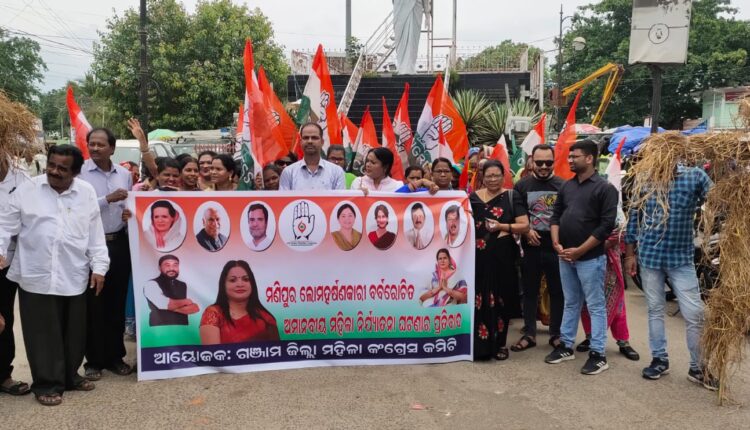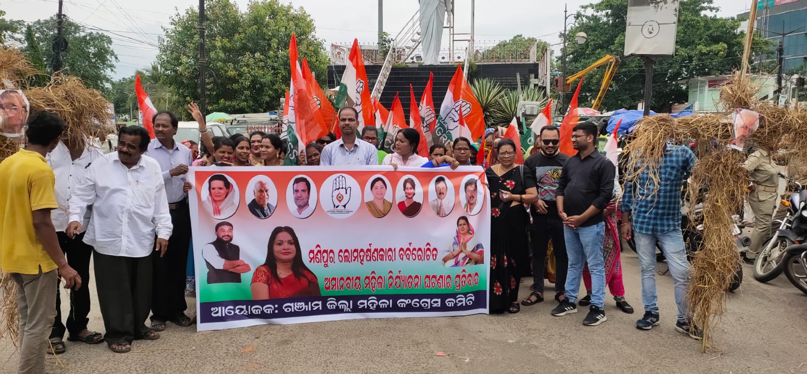 ଏହି ପରିପ୍ରେକ୍ଷୀରେ ଗଞ୍ଜାମ ଜିଲ୍ଲା ମହିଳା କଂଗ୍ରେସ ପକ୍ଷରୁ ସ୍ଥାନୀୟ ପୁରୁଣା ବସ୍ ଷ୍ଟାଣ୍ଡ ଠାରେ ଏକ ପ୍ରତିବାଦ ସଭା ଅନୁଷ୍ଠିତ ହୋଇଥିଲା । ନାରୀର ସଂମାନ ରକ୍ଷା କରିବାରେ ବିଫଳ ହୋଇଥିବା ପ୍ରଧାନମନ୍ତ୍ରୀ ନରେନ୍ଦ୍ର ମୋଦୀ ଓ ମୁଖ୍ୟମନ୍ତ୍ରୀ ନବୀନ ପଟ୍ଟନାୟକଙ୍କ କୁଶପୁତଳିକା ଦାହ କରାଯାଇଥିଲା । ଏହି ପରିପ୍ରେକ୍ଷୀରେ ମଣିପୁରରେ ଶାନ୍ତି ପ୍ରତିଷ୍ଠା ଓ ମଣିପୁର ମୁଖ୍ୟମନ୍ତ୍ରୀଙ୍କ ଇସ୍ତଫା ଦାବି କରାଯାଇଥିଲା । ଏହି କାର୍ଯ୍ୟକ୍ରମର ସଂଯୋଜନା କରିଥିଲେ ଜିଲ୍ଲା ମହିଳା କଂଗ୍ରେସ ସଭାନେତ୍ରୀ ବନଜା ପଣ୍ଡା । କାର୍ଯ୍ୟକ୍ରମରେ ପ୍ରଦେଶ କଂଗ୍ରେସ ମୂଖପାତ୍ର ପୀତବାସ ପଣ୍ଡା, ରାଜ୍ୟ ଯୁବ କଂଗ୍ରେସ ସାଧାରଣ ସମ୍ପାଦକ ଚିନ୍ମୟ କୁମାର ହୋତା, ଯୁବ କଂଗ୍ରେସ ସଭାପତି ବିକାଶ ନାୟକ, ଉପସଭାନେତ୍ରୀ ସୁପ୍ରଭା ଦାସ, ଜିଲ୍ଲା ମହିଳା କଂଗ୍ରେସ ଉପସଭାନେତ୍ରୀ ରଂଜିତା ପ୍ରଧାନ, ସ୍ୱପ୍ନାରାଣୀ ପାଣିଗ୍ରାହୀ, ସାଧାରଣ ସମ୍ପାଦକ ଗୀତାଞ୍ଜଳି ସାହୁ, ସମ୍ପାଦକ ସୁନିତା ସାହୁ, ସବିତା ନାୟକ, ରିନା ନାୟକ, ପଦ୍ମା ମହାରଣା, ସିଦ୍ଧାନ୍ତ କୁମାର ସାହୁ ପ୍ରମୁଖ କଂଗ୍ରେସ କର୍ମୀ ଯୋଗ ଦେଇଥିଲେ ।