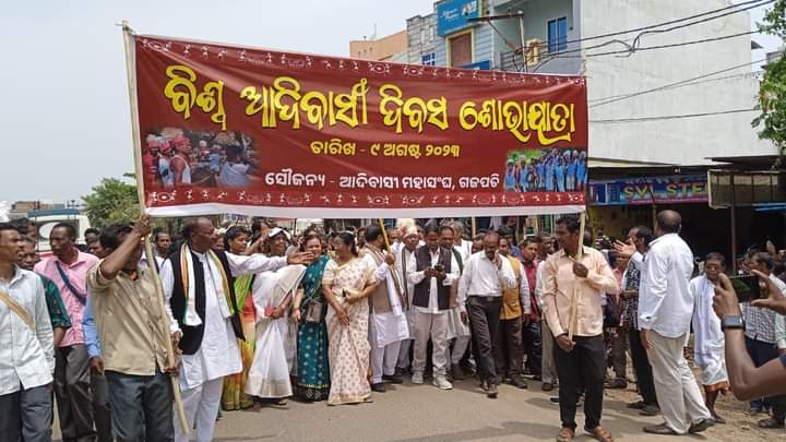 ଅନୁସନ୍ଧାନ ଭାରତ(ବ୍ୟୁର): ୨୯ ତମ ବିଶ୍ୱ ଆଦିବାସୀ ଦିବସ ଉପଲକ୍ଷେ ଗଜପତି ଜିଲ୍ଲାର ସଦର ମହକୁମା ପାରଳାଖେମୁଣ୍ଡି ସହରରେ ଏକ ବିଶାଳ ଶୋଭାଯାତ୍ରାରେ ହଜାର ହଜାର ଆଦିବାସୀ ସହର ପରିକ୍ରମା କରିଥିଲେ I ଗଜପତି ଜିଲ୍ଲାର ଆଦିବାସୀମାନେ ସେମାନଙ୍କର ପାରମ୍ପରିକ ବେଶଭୁଷା ଓ ବିଭିନ୍ନ ବାଦ୍ୟ, ତୁରୀ ଆଦିରେ ସୁସଜିତ ହୋଇ ପାରଳାଖେମୁଣ୍ଡି ନୂଆ ବସଷ୍ଟାଣ୍ଡ ଠାରୁ ଶୋଭାଯାତ୍ରା ଆରମ୍ଭ କରି ସମଗ୍ର ପାରଳାଖେମୁଣ୍ଡି ସହରରେ ପରିକ୍ରମା କରିଥିଲେ I ଓଡିଶାର ପୂର୍ଵତନ ମୁଖମନ୍ତ୍ରୀ ଗିରିଧର ଗମାଙ୍ଗ, ଗଜପତି ଜିଲ୍ଲାପାଳ ସ୍ମୃତି ରଞ୍ଜନ ପ୍ରଧାନ, ଗଜପତିର ଏସଡିସି ଅଧକ୍ଷ, ପୂର୍ବତନ ମନ୍ତ୍ରୀ ହଳଧର କାର୍ଜି, ମୋହନା ବିଧାୟକ ଦାଶରଥି ଗମାଙ୍ଗ, ଗୁଣୁପୁର ବିଧାୟକ ରଘୁନାଥ ଗମାଙ୍ଗ, ଅବସରପ୍ରାପ୍ତ ଆଇଏସ ଅଧିକାରୀ ପବିତ୍ର ମଣ୍ଡଳ, ଅବସରପ୍ରାପ୍ତ ଓଏଏସ ଅଧିକାରୀ ଗୋରାଚାନ୍ଦ ଗମାଙ୍ଗ, ବିଜେଡି ନେତା ପଲଭ ଲିମା, ଗୁମା ବ୍ଲକ ପୂର୍ବତନ ଉପାଧକ୍ଷ ବେର୍ନିକ ଗୋମାଙ୍ଗ ଅଶୋକ ଭୂୟାଁ, ସୁଦାମ ମଣ୍ଡଳ, ସୁଧାକର ଶବର, ତ୍ରିନାଥ କାର୍ଜି ପ୍ରମୁଖ ଏହି କାର୍ଯ୍ୟକ୍ରମରେ ଯୋଗ ଦେଇ ବିଶ୍ୱ ଆଦିବାସୀ ଦିବସ ପାଳନ ଅବସରରେ ସମସ୍ତଙ୍କୁ ଶୁଭେଚ୍ଛା ଓ ଅଭିନନ୍ଦନ ଜ୍ଞାପନ କରିବା ସହ ଆଦିବାସୀମାନଙ୍କ ସୁରକ୍ଷା ଓ ବିକାଶ ନେଇ ଆଲୋଚନା କରିଥିଲେ I