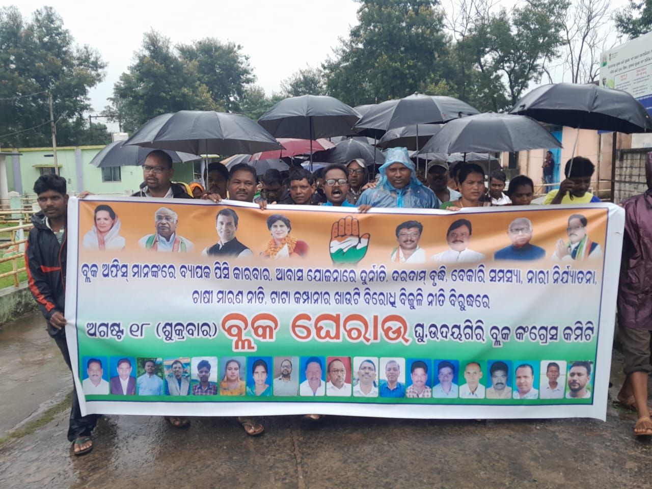ଅନୁସନ୍ଧାନ ଭାରତ(ବ୍ୟୁର): ଓଡ଼ିଶା ପ୍ରଦେଶ କଂଗ୍ରେସ କମିଟିର ନିର୍ଦେଶ କ୍ରମେ ଆଜି ଘୁ.ଉଦୟଗିରି ନଗର ଏବଂ ବ୍ଲକ କଂଗ୍ରେସ ତରଫରୁ ମହାମହିମ ରାଜ୍ୟପାଳଙ୍କ ଉଦେଶ୍ୟରେ ସ୍ଥାନୀୟ ଗୋଷ୍ଠୀ ଉନ୍ନୟନ ଅଧିକାରୀ ଆଶିଷ କୁମାର ତ୍ରିପାଠୀଙ୍କ ଜରିଆରେ ୯ ଦଫା ଦାବୀ ନେଇ ଏକ ଦାବୀ ପତ୍ର ପ୍ରଦାନ କରାଯାଇଛି I ଉକ୍ତ ଦାବୀ ଗୁଡ଼ିକ ହେଲା ବ୍ଲକ ସ୍ତରରେ ଚାଲିଥିବା ୧୫ ରୁ ୫୦ ପ୍ରତିଶତ ପି.ସି କାରବାର ବନ୍ଦ, ପ୍ରତ୍ୟେକ ପଞ୍ଚାୟତକୁ ୫୦ ଲକ୍ଷର ଅନୁଦାନକୁ ସିଧାସଳଖ ପ୍ରଦାନ କରିବା, ଖାଲି ପଡ଼ିଥିବା ୨ ଲକ୍ଷ ୨୬ ହଜାର ୫୫୯ ସରକାରୀ ପଦବୀକୁ ପୂରଣ କରିବା, ସମସ୍ତ କର୍ମଚାରୀଙ୍କୁ ସ୍ଥାୟୀ କରିବା ସହ ବେକାର ଯୁବକ ଯୁବତୀଙ୍କୁ ନିଯୁକ୍ତି ପ୍ରଦାନ କରିବା, ସମସ୍ତ ନିତ୍ୟ ବ୍ୟବହାର୍ଯ୍ୟ ସାମଗ୍ରୀ ଦର ବୃଦ୍ଧିକୁ ବନ୍ଦ କରିବା, କୃଷିଜାତ ଦ୍ରବ୍ୟ ଅଭାବ ବିକ୍ରି ବନ୍ଦ କରିବା ଓ ପ୍ରତି ବ୍ଲକରେ ଶୀତଳ ଭଣ୍ଡାର ଖୋଲିବା ପଇଁ ବ୍ୟବସ୍ଥା କରିବା, ଲୋ ଭଲ୍ଟେଜ ପାୱାର କଟ ଓ ବିଦ୍ୟୁତ ଦେୟ ବୃଦ୍ଧି ବନ୍ଦ କରିବା ସହ ଟାଟା କମ୍ପାନୀର ଖାଉଟି ମାରଣା ବିଜୁଳୀ ନୀତିକୁ ବନ୍ଦ କରିବା, ଅନୁସୁଚିତ ଜାତି ଓ ଜନଜାତି ଏବଂ ପଛୁଆ ବର୍ଗଙ୍କୁ କଂଗ୍ରେସ ଦେଇଥିବା ଅଧିକାରକୁ କ୍ଷୁର୍ଣ୍ଣ ନ କରିବା, ନାରୀ ନିର୍ଯ୍ୟାତନା ବନ୍ଦ କରିବା ସହ ଆର୍ଥିକ ଦୃଷ୍ଟି କୋଣରୁ ସଶକ୍ତ କରିବା, ପ୍ରଧାନମନ୍ତ୍ରୀ ଆବାସ ଯୋଜନା ପ୍ରଦାନ ବେଳେ କୌଣସି ପ୍ରକାର ପ୍ରିୟାପ୍ରୀତି ପୋଷଣ ନ କରିବା ସହ ପ୍ରକୃତ ହିତାଧିକାରୀଙ୍କୁ ଆବାସ ଯୋଜନା ରେ ସାମିଲ କରିବା ଇତ୍ୟାଦି I ଏହି କାର୍ଯ୍ୟକ୍ରମରେ ବ୍ଲକ ସଭାପତି ସଦାନନ୍ଦ ନାୟକ, ଜିଲ୍ଲା ମହିଳା ସଭାନେତ୍ରୀ ରୁଦା ମଲ୍ଲିକ, ପୂର୍ବତନ ନଗର କଂଗ୍ରେସ ସଭାପତି ଓ ଜିଲ୍ଲା ଯୁବ କଂଗ୍ରେସ ଉପସଭାପତି ଗଗନ କୁମାର ପ୍ରଧାନ, ୱାର୍ଡ଼ ନମ୍ବର ୮ କାଉନସିଲର ଯାକେଶ ପ୍ରଧାନ, ଯୁବନେତା ଦେବାଶିଷ ଦିଗାଳ, ବରିଷ୍ଠ କଂଗ୍ରେସ କର୍ମୀ ବୀରେନ୍ଦ୍ର ମହାମଲ୍ଲିକ, ସୂର୍ଯ୍ୟ କାନ୍ତ ନାୟକ, ନାରିନେତ୍ରୀ ମଧୁଲିନା ଦିଗାଲ, ଆଞ୍ଜୁମ ଅହମଦ, ଜିଖରୀୟ ନାୟକଙ୍କ ସମେତ ପ୍ରବଳ ବର୍ଷା ସତ୍ୱେ ମଧ୍ୟ ଏକ ସହରୁ ଉର୍ଧ୍ଵ କଂଗ୍ରେସ କର୍ମୀ ଯୋଗ ଦେଇଥିଲେ I ଆଇନ ଶୃଙ୍ଖଳା କୁ ଦୃଷ୍ଟିରେ ରଖି ଥାନାଅଧିକାରୀ ଅଜୟ କୁମାର ସ୍ୱାଇଁ ଓ ଅନ୍ୟ ଅଧିକାରୀ ମାନେ ଉପସ୍ଥିତ ଥିଲେ I