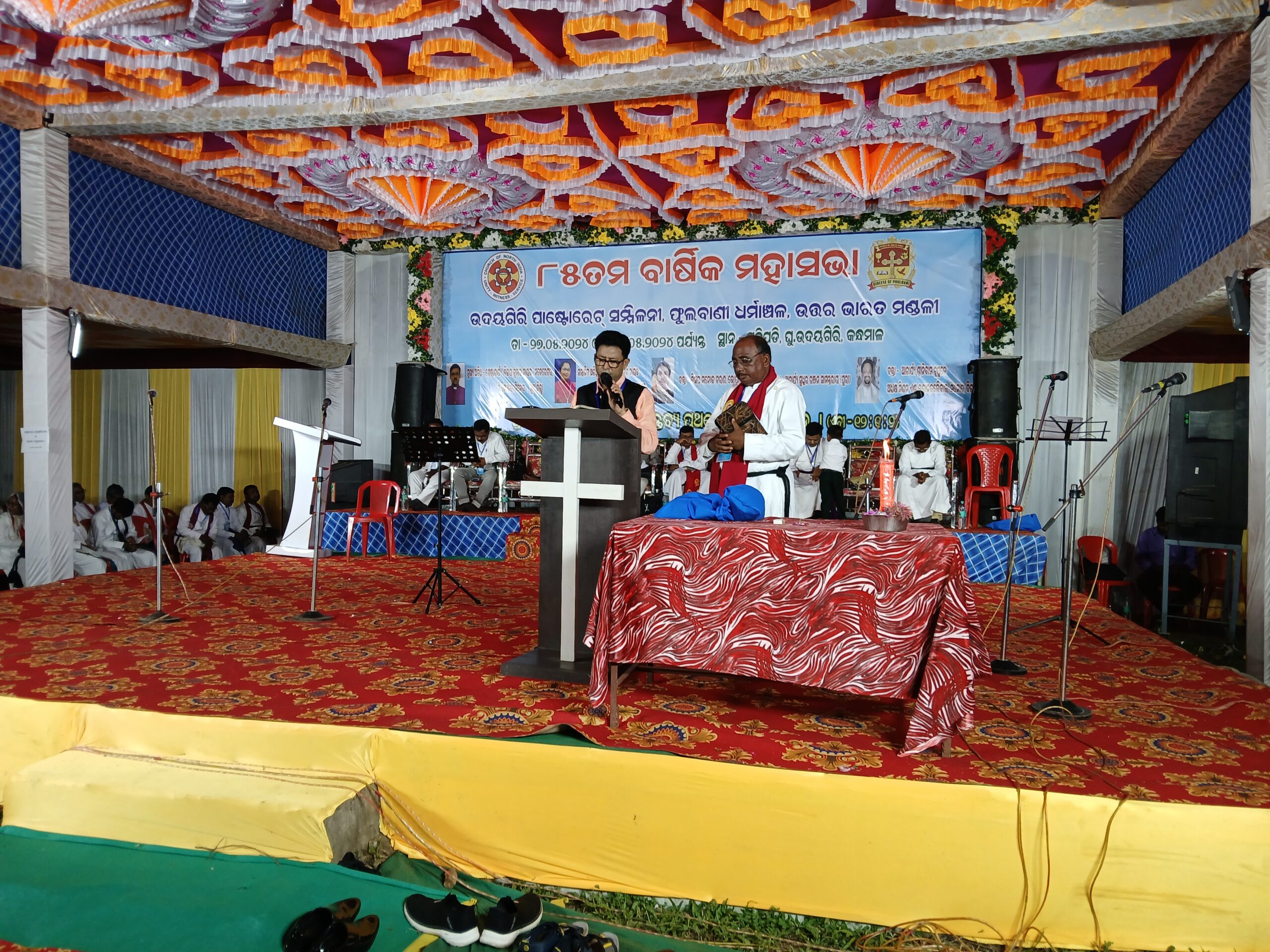 ଅନୁସନ୍ଧାନ ଭାରତ(ବ୍ୟୁର): କନ୍ଧମାଳ ଜିଲ୍ଲା ଗୁଡରି ପଡ଼ି ଠାରେ ଆଜି ଫୁଲବାଣୀ ଧର୍ମାଅଞ୍ଚଳ ଘୁ.ଉଦୟଗିରି ପାଷ୍ଟରେଟ ସମ୍ମିଳନୀ ପକ୍ଷରୁ ୮୫ତମ ମହାସଭା ମିଶନ ପଡିଆରେ ଅନୁଷ୍ଠିତ ହୋଇଛି l ଏହି ସଭାରେ ଶ୍ରେଷ୍ଠାଚାର୍ଯ୍ୟ ବିଜୟ କୁମାର ନାୟକ(ମଡରେଟର ସିଏନଆଇ, ସିନଦ ଓ ଧର୍ମାଧକ୍ଷ ଆଗ୍ରା ଧର୍ମାଅଞ୍ଚଳ ଉତ୍ତର ଭାରତ ମଣ୍ଡଳୀ) ମୁଖ୍ୟ ଅତିଥି ଭାବରେ ଯୋଗ ଦେଇ ଥିବା ବେଳେ ମହାଚାର୍ଯ୍ୟ ଭାଉଲେଟ ନାୟକ ( ଧର୍ମାଧକ୍ଷ ଫୁଲବାଣୀ ଧର୍ମାଅଞ୍ଚଳ, ଉତ୍ତର ଭାରତ ମଣ୍ଡଳୀ) ସନମ୍ମାନନୀୟ ଅତିଥି ଭାବରେ ଯୋଗ ଦେଇ ଥିଲେ l ଅନ୍ୟ ପକ୍ଷରେ ଆଚାର୍ଯ୍ୟ ସୁଧୀର ରଞ୍ଜନ ସାମନ୍ତରାୟ ସିଏନଆଇ ଚର୍ଚ୍ଚ, ପୁରୀ ବକ୍ତା ଭାବେ ଯୋଗ ଦେଇ ବାଇବଲ ଧର୍ମଶାସ୍ତ୍ରରୁ ଉପସ୍ଥିତ ଖ୍ରୀଷ୍ଟ ଶ୍ରଦ୍ଧାଳୁଙ୍କୁ ଶିକ୍ଷା ଦେଇ ଥିଲେ l ସଭାକୁ ଶ୍ରେଷ୍ଠାଚାର୍ଯ୍ୟ ବିଜୟ କୁମାର ନାୟକ ରିବନ କାଟି ଉଦଘାଟନ କରି ଥିଲେ l ଉକ୍ତ ସଭା ତିନି ଦିନ ଅନୁଷ୍ଠିତ ହୋଇ 29 ତାରିଖରେ ଶେଷ ହେବ l ଏହି ସଭାରେ କନବାଗେରି ଚର୍ଚ୍ଚର ଯୁବଯୁବତୀ ନୃତ୍ୟ ପରିବେଷଣ କରି ଥିବା ବେଳେ ସଂଗୀତ ଦଳ ସ୍ୱାଗତ ସଂଗୀତ ସହ ଖ୍ରୀଷ୍ଟିୟ ଭକ୍ତିମୂଳକ ସଂଗୀତ ପରିବେଷଣ କରି ଥିଲେ l