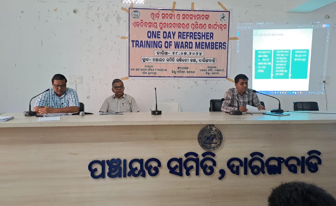 ଦାରିଙ୍ଗବାଡି/ବ୍ରାହ୍ମଣୀ ଗାଁ(ଅଶୋକ ସିଂ): କନ୍ଧମାଳ ଜିଲ୍ଲା ଦାରିଙ୍ଗିବାଡ଼ି ବ୍ଲକ ପକ୍ଷରୁ ୱାର୍ଡ ସଦସ୍ୟ ଓ ସଦସ୍ୟାମାନଙ୍କ ଏକ ଦିବସୀୟ ପୁନଃ ନବୀକରଣ ପ୍ରଶିକ୍ଷଣ କାର୍ଯ୍ୟକ୍ରମ ସ୍ଥାନୀୟ ପଞ୍ଚାୟତ ସମିତି ସଭାଗୃହ ଠାରେ ଅନୁଷ୍ଠିତ ହୋଇଯାଇଅଛି, ଗୋଷ୍ଠୀ ଉନ୍ନୟନ ଅଧିକାରୀ ଗଦାଧର ପାତ୍ରଙ୍କ ଅଧ୍ୟକ୍ଷତାରେ ଆୟୋଜିତ କାର୍ଯ୍ୟକ୍ରମରେ ଗ୍ରାମ ପଞ୍ଚାୟତ ଉନ୍ନୟନ ଅଧିକାରୀ ସୁରେଶ ପଣ୍ଡା, ଏ ପି ଓ କେଦାର ଚନ୍ଦ୍ର ପଣ୍ଡା, ରିସର୍ସ ପର୍ସନ ଅଭିରାମ ପ୍ରସାଦ ନନ୍ଦ, କମ୍ପ୍ୟୁଟର ପ୍ରୋଗ୍ରାମ ଅପରେଟର ଅରୂପ କୁମାର ପ୍ରଧାନ , ପଞ୍ଚାୟତ କାର୍ଯ୍ୟ ନିର୍ବାହୀ ଅଧିକାରୀ ଦୁଃଶାସନ ବେହେରା ପ୍ରମୁଖ ଯୋଗ ଦେଇ ପ୍ରଶିକ୍ଷଣ ପ୍ରଦାନ କରିଥିଲେ । ଏହି ପ୍ରଶିକ୍ଷଣ କାର୍ଯ୍ୟକ୍ରମର ମୁଖ୍ୟ ଲକ୍ଷ୍ୟ ହେଉଛି, କେନ୍ଦ୍ର ସରକାର ଓ ରାଜ୍ୟ ସରକାରଙ୍କ ଠାରୁ ମିଳୁଥିବା ଅନୁଦାନ ରାଶିକୁ ପଞ୍ଚାୟତ ତଥା ୱାର୍ଡ ସ୍ତରରେ କିଭଳି ସଦ ବିନିଯୋଗ କରି ପାରିବେ ସେ ସମ୍ପର୍କରେ ବିଶେଷ ଭାବେ ଆଲୋଚନା କରାଯାଇ ଥିଲା, ସରପଞ୍ଚଙ୍କ ପୂର୍ଣ୍ଣ କ୍ଷମତା ରହିଛି ପଞ୍ଚାୟତର ଆୟକୁ ଉନ୍ନୟନ କାର୍ଯ୍ଯରେ ବିନିଯୋଗ କରିପାରିବେ, ସରପଞ୍ଚ ଚାହିଁଲେ ପଞ୍ଚାୟତର ଯେକୌଣସି ଉନ୍ନୟନ କାର୍ଯ୍ଯ ପାଇଁ ପଞ୍ଚାୟତର ଆୟକୁ ବିନିଯୋଗ କରିପାରିବେ ଏବଂ ମନୋରେଗା କାର୍ଯ୍ୟ ଖସଡ଼ା କିପରି ପ୍ରସ୍ତୁତ କରିବେ ଏବଂ ଗ୍ରାମ ପଞ୍ଚାୟତ ବାର୍ଷିକ କାର୍ଯ୍ୟ ଖସଡ଼ା କିପରି କରିବେ l ପଞ୍ଚଦଶ କେନ୍ଦ୍ରୀୟ ଆୟୋଗ ଅନୁଦାନ ଓ ପଞ୍ଚଦଶ ରାଜ୍ୟ ଅର୍ଥ ଆୟୋଗରେ ମିଳୁଥିବା ଅନୁଦାନ ରାଶିକୁ କିପରି ବିନିଯୋଗ କରିପାରିବେ ଏବଂ ଏସବୁ କାମ ପାଇଁ କଣ ସବୁ ସରକାରୀ ବ୍ୟବସ୍ଥା ରହିଛି ସେ ସମ୍ପର୍କରେ ତାଲିମ ପ୍ରଦାନ କରାଯାଇ ଥିଲା । ପଲ୍ଲୀସଭା ଓ ଗ୍ରାମସଭା ପାଇଁ ୱାର୍ଡ ସଦସ୍ୟ ମାନଙ୍କର ଭୂମିକା କଣ ରହିଛି ସେ ସମ୍ପର୍କ ରେ ଆଲୋଚନା କରାଯାଇଥିଲା। ଦାରିଙ୍ଗବାଡି ଏକ ବୃହତ୍ତ ବ୍ଲକ ହୋଇ ଥିବାରୁ ପାଞ୍ଚୋଟି ପର୍ଯ୍ୟାୟରେ ଏହି ପ୍ରଶିକ୍ଷଣ ପ୍ରଦାନ କରିବାର କାର୍ଯ୍ୟ କ୍ରମ ରହିଛି, ଆଜିର ପ୍ରଥମ ଦିନରେ ଗୁମିକିଆ, ତିଲୋରି ,କିରିକୁଟି, ଦାରିଙ୍ଗବାଡି, ପର୍ତ୍ତମହା ପଞ୍ଚାୟତର ୱାର୍ଡ ସଦସ୍ୟ ସଦସ୍ୟା ମାନେ ଯୋଗ ଦେଇଥିଲେ ।
