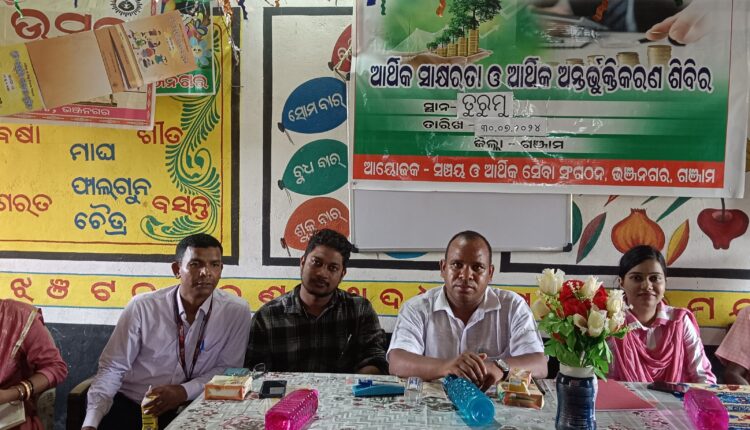 ଭଞ୍ଜନଗର(ନିଲୁ ବିଷୋୟୀ): ଭଞ୍ଜନଗର ବ୍ଳକ ଅନ୍ତର୍ଗତ ତୁରୁମୁ ଠାରେ ଆର୍ଥିକ ସାକ୍ଷରତା ଓ ଅନ୍ତର୍ଭୂକ୍ତିକରଣ ଶିବିର ଅନୁଷ୍ଠିତ ହୋଇଯାଇଛି । ବୈଠକରେ ଭଞ୍ଜନଗର ଡାକ ଅଧିକ୍ଷକରବିନାରାୟଣ ବେହେରା, ଉପଖଣ୍ଡ ସାମାଜିକ ସୁରକ୍ଷା ଅଧିକାରୀ ଏସିଓ ଶବର, ଆଇ. ସି .ଡି.ଏସ ସୁପରଭାଇଜର ସରିତା ପାତ୍ର, ବ୍ରହ୍ମପୁର ଉପଖଣ୍ଡ ସ୍ୱଳ୍ପ ସଞ୍ଚୟ ଅଧିକାରୀ ସ୍ଵାଭିମାନ ସାହୁ, ଇଣ୍ଡିଆ ପୋଷ୍ଟ ପେମେନ୍ଟ ବ୍ୟାଙ୍କ ମ୍ୟାନେଜର କୃଷ୍ଣ ଚନ୍ଦ୍ର ନାୟକ ଏବଂ ମେଲ ଓଭର୍ସିୟର ସୂର୍ଯ୍ୟ ନାରାୟଣ ସେଠୀ ଅତିଥି ଭାବେ ଯୋଗ ଦେଇଥିଲେ । ବିଭିନ୍ନ ସ୍ୱଳ୍ପ ସଞ୍ଚୟ ଯୋଜନା, ଚିଟପଣ୍ଡ ସଂସ୍ଥାରୁ ସୁରକ୍ଷା ଓ ସୁରକ୍ଷିତ ସଞ୍ଚୟ ସମ୍ପର୍କରେ ଆଲୋଚନା କରଯାଇଥିଲା । ଉପଖଣ୍ଡ ସ୍ୱଳ୍ପ ସଞ୍ଚୟ ଅଧିକାରୀ ଶୁଶ୍ରୀ ଲୋପାମୁଦ୍ରା ପଣ୍ଡା ଏହାକୁ ପରିଚାଳନା କରିଥିଲେ । ଏଥିରେ ଅଙ୍ଗନୱ୍ବାଡି କର୍ମୀ, ଅଙ୍ଗନୱ୍ବାଡି ସହାୟିକା ଓ ସ୍ୱଳ୍ପ ସଞ୍ଚୟ ଅଭିକର୍ତ୍ତାମାନେ ଯୋଗ ଦେଇଥିଲେ ।