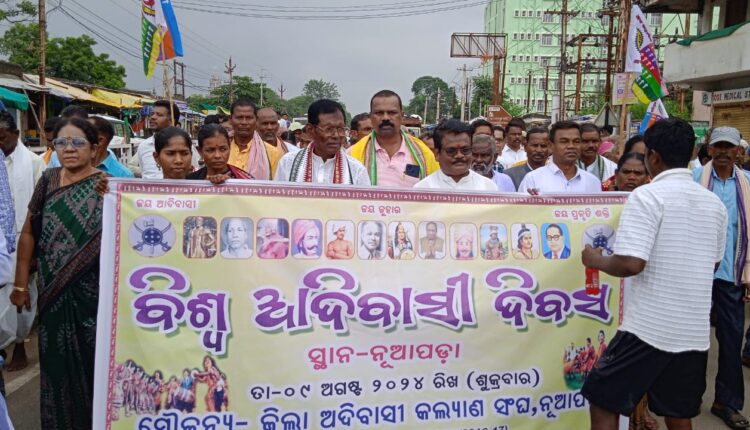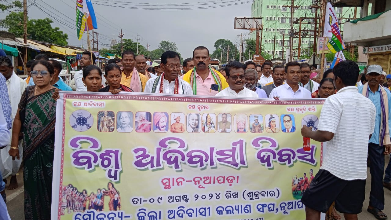 ନୁଆପଡ଼ା(ବିରବଲ ପ୍ରଧାନ): ନୂଆପଡ଼ା ଜିଲ୍ଲା ସଦର ମହକୁମା ସ୍ଥିତ ଆଦିବାସୀ କଲ୍ୟାଣ ସଂଘ ପକ୍ଷରୁ ବିଶ୍ବ ଆଦିବାସୀ ଦିବସ ପାଳିତ ହୋଇ ଯାଇଅଛି । ଏହି ଉପଲକ୍ଷେ ନୂଆପଡ଼ା ମିନି ଷ୍ଟଡିୟମରୁ ଏକ ଶୋଭାଯାତ୍ରା ବାହାରି ନୂଆପଡ଼ା ନଗର ପରିକ୍ରମା କରିଥିଲା ଏକତା ଛକ ଠାରେ ଆଦିବାସୀଙ୍କ ବର୍ଷୀୟାନ ନେତା ଘାସିରାମ ମାଝୀଙ୍କ ପ୍ରତିମୂର୍ତ୍ତିରେ ମାଲ୍ୟାର୍ପଣ କରିଥିଲେ । ନୂଆପଡ଼ା ଜିଲ୍ଲାପାଳ କାର୍ଯ୍ୟାଳୟ ସମ୍ମଖରେ ଏକ ବିକ୍ଷୋଭ ସଭା କରିବା ସହ ଆଦିବାସୀଙ୍କ ବିକାଶ, ଶିକ୍ଷା କ୍ଷେତ୍ର ରେ ଅଗ୍ରଗତି, ଆଦିବାସୀଙ୍କ ପାଇଁ ଉଦ୍ଧିଷ୍ଟ ଶିକ୍ଷା ଅନୁଷ୍ଠାନ ଆଶ୍ରମ ବିଦ୍ୟାଳୟର ଉତ୍ତମ ବ୍ୟବସ୍ଥା, ଆଶ୍ରମ ବିଦ୍ୟାଳୟକୁ ଯୁକ୍ତ ଦୁଇ ଉଚ୍ଚ ମାଧ୍ୟମିକ ବିଦ୍ୟାଳୟ ମାନ୍ୟତା, ପହରିଆଙ୍କୁ ଆଦିବାସୀ ମାନ୍ୟତା କରି ଆଦିବାସୀ ଶ୍ରେଣୀରେ ଅନ୍ତର୍ଭୁକ୍ତ ଆଦି ମୁଖ୍ୟ ଦାବୀ ନେଇ ଓଡ଼ିଶାର ଆଦିବାସୀ ମୁଖ୍ୟମନ୍ତ୍ରୀ ମୋହନ ମାଝୀଙ୍କ ଉଦ୍ଧେଶ୍ୟରେ ୧୩ ଦଫା ଦାବୀ ପତ୍ର ପ୍ରଦାନ କରିଛନ୍ତି । ବିଶ୍ଵ ଆଦିବାସୀ ଦିବସ ପାଳନ ସଭାରେ ଘାସିରାମ ମାଝୀ ଅଧ୍ୟକ୍ଷତା କରିଥିବା ବେଳେ ରାଜ୍ୟ ଆଦିବାସୀ ସଂଘ ସଭାପତି ବାଳକୃଷ୍ଣ ଶବର ଯୋଗ ଦେଇ ଆଦିବାସୀଙ୍କ ପାଇଁ ଉଦ୍ଧିଷ୍ଟ ଆଇନର କାର୍ଯ୍ୟକାରିତା ସହ, ମାଡା ଗ୍ରାମରେ ଆଦିବାସୀ ନିଯୁକ୍ତି ପାଇଁ ଆହ୍ବାନ କରିଥିଲେ ।