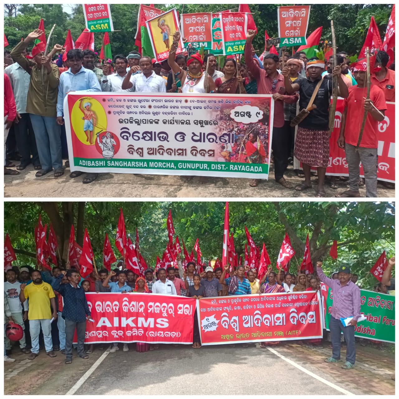 ଗୁଣପୁର(ସୁନିଲ୍ କୁମାର ସାବତ): ବିଶ୍ଵ ଆଦିବାସୀ ଦିବସ ଅବସରରେ ଗୁଣପୁର ଠାରେ ଅଖିଳ ଭାରତ ଆଦିବାସୀ ମଞ୍ଚ ଓ ଅଖିଳ ଭାରତ କିଶାନ୍ ମଜଦୂର ସଭା ପକ୍ଷରୁ ମିଳିତ ଭାବେ ସମାବେଶର ଆୟୋଜନ କରାଯାଇଥିଲା । ସଙ୍ଗଠନର ଜିଲ୍ଲା କମିଟି ସଭ୍ୟ ତଥା ବରିଷ୍ଠ ଆଦିବାସୀ ନେତା ଅର୍ଜୁନ ଗମାଙ୍ଗଙ୍କ ନେତୃତ୍ୱରେ ଆଜି ପୂର୍ବାହ୍ନରେ ସହର ଉପକଣ୍ଠରେ ଥିବା ସୁବୁଦ୍ଧିବେଢା ଠାରୁ ଆଦିବାସୀମାନଙ୍କ ଏକ ବିଶାଳ ଶୋଭାଯାତ୍ରା ବାହାରି ସହର ପରିକ୍ରମା କରି ଉପଜିଲ୍ଲାପାଳଙ୍କ କାର୍ଯ୍ୟାଳୟରେ ପହଞ୍ଚିଥିଲା । ସେଠାରେ ଅନୁଷ୍ଟିତ ଏହି ସମାବେଶରେ ଅଖିଳ ଭାରତ ଆଦିବାସୀ ସଭାର ଆବାହକ କେଦାର ଶବର ମୁଖ୍ୟବକ୍ତା ଭାବେ ଯୋଗଦେଇ କେନ୍ଦ୍ର ଓ ରାଜ୍ୟ ସରକାରଙ୍କ ଆଦିବାସୀ ବିରୋଧି ନୀତି ଯୋଗୁଁ ଆଦିବାସୀମାନେ ନିଜର ସାମ୍ବିଧାନିକ ଅଧିକାରରୁ ବଞ୍ଚିତ ହେଉଛନ୍ତି ବୋଲି କହିଥିଲେ । ସରକାର ଜମି, ଜଙ୍ଗଲ ଓ ପ୍ରାକୃତିକ ସମ୍ପଦ ଉପରେ ଆଦିବାସୀଙ୍କୁ ଅଧିକାର ଦେବା ବଦଳରେ ବଡ ବଡ କମ୍ପାନୀଙ୍କ ସ୍ଵାର୍ଥରେ ସେ ସବୁକୁ ଛଡେଇବାରେ ଲାଗିଛନ୍ତି ବୋଲି କହିଥିଲେ । ବିକାଶ ନାଁରେ ଆଦିବାସୀଙ୍କ ଜମି, ଜଙ୍ଗଲ, ପରିବେଶ ଓ ଜୀବିକାକୁ ଛଡେଇବାକୁ ସରକାର ଓ କମ୍ପାନିମାନଙ୍କ ଉଦ୍ୟମର ପ୍ରତିରୋଧ କରାଯିବ ବୋଲି ଚେତାବନୀ ଦେଇଥିଲେ । ଓଡ଼ିଶାର ପ୍ରାୟ ଏକ ଚତୁର୍ଥାଂଶ ଜନସଂଖ୍ୟା ଆଦିବାସୀ ହୋଇଥିଲେ ବି ସରକାର ସେମାନଙ୍କ ଭାଷା, ଲିପି ଓ ସଂସ୍କୃତିର ବିକାଶ ଦିଗରେ କୌଣସି ଉଦ୍ୟମ ନକରିବା ଫଳରେ ଅନେକ ଆଦିବାସୀ ସମ୍ପ୍ରଦାୟ ଓ ସେମାନଙ୍କ ଭାଷା ନିଶ୍ଚିହ୍ନ ହେବାକୁ ବସିଛି ବୋଲି କହିଥିଲେ । ଅତଏବ ଆଦିବାସୀମାନେ ନିଜର ଜମି, ଜଙ୍ଗଲ ଓ ଜୀବିକାର ସୁରକ୍ଷା ସହ ଭାଷା ଓ ସଂସ୍କୃତିର ସୁରକ୍ଷା କରିବା ଜରୁରୀ ବୋଲି ମତ ପ୍ରକାଶ ପାଇଥିଲା । ଅନ୍ୟମାନଙ୍କ ମଧ୍ୟରେ ଆଦିବାସୀ ନେତା ବୁଦ୍ଧଦେବ ଶବର, ତୁଳସୀ ଶବର, ରମେଶ ଗମାଙ୍ଗ ପ୍ରମୁଖ ଯୋଗ ଦେଇଥିଲେ । ଶେଷରେ ଉଭୟ ସଂଗଠନ ପକ୍ଷରୁ ରାଜ୍ୟର ଆଦିବାସୀଙ୍କ ସ୍ଵାର୍ଥ ନେଇ ଏକ ପାଞ୍ଚ ଦଫା ଦାବି ସମ୍ବଳିତ ଏକ ସ୍ମାରକପତ୍ର ଗୁଣପୁର ଉପଜିଲ୍ଲାପାଳଙ୍କ ଜରିଆରେ ରାଜ୍ୟର ମୁଖ୍ୟମନ୍ତ୍ରୀଙ୍କୁ ପ୍ରଦାନ କରାଯାଇଥିଲା । ସେହି ପରି ଆଦିବାସୀ ସଂଘର୍ଷ ମୋର୍ଚ୍ଚା(ଏଏସ୍ଏମ୍)ର ସଭାପତି ତ୍ରିପତି ଗମାଙ୍ଗଙ୍କ ନେତୃତ୍ୱରେ ଆଜି ବିଶ୍ଵ ଆଦିବାସୀ ଦିବସ ପାଳନ କରାଯାଇଛି। ଏହି ଅବସରରେ ସ୍ଥାନୀୟ ନୂଆ ବସ୍ ଷ୍ଟାଣ୍ଡ ରୁ ଏକ ଶୋଭଯାତ୍ରା ବାହାରିଥିଲା । ଆଦିବାସୀମାନେ ପାରମ୍ପରିକ ଭାବେ ନାଚଗୀତ କରି ଉପଜିଲ୍ଲାପାଳଙ୍କ କାର୍ଯ୍ୟାଳୟ ସମ୍ମୁଖରେ ବିକ୍ଷୋଭ ପ୍ରଦର୍ଶନ କରିଛନ୍ତି । ରାଷ୍ଟ୍ରପତି ଓ ମୁଖ୍ୟମନ୍ତ୍ରୀଙ୍କ ଉଦ୍ଦେଶ୍ୟରେ ଏକ ସ୍ମାରକପତ୍ର ପ୍ରଦାନ କରିଛନ୍ତି । ଏଥିରେ ଆଦିବାସୀଙ୍କ ୧୮ଦଫା ଦାବି ଉଲ୍ଲେଖ ରହିଛି । ସମାବେଶରେ କୈଳାଶ ଶବର, ରାଜେନ୍ଦ୍ର ମାଝୀ, ରବିନି ମାଲା, ଗୋପୀ ନିମାଲା, ଗାଗାନା ଶବର, ନକ୍ଷତ୍ର ଶବର, ରମେଶ ଶବର, ଅଗୟ ଶବର, ସମ୍ଭରା ଶବର, ମୁଁ ନାଥ ଶବର, ତୁଳସ ଶବର, ଝିରମୟ ମାଝୀ, ଭିମ ମାଝୀ ପ୍ରମୁଖଙ୍କ ସମେତ ଶତାଧିକ ଆଦିବାସୀ ସାମିଲ୍ ହୋଇଥିଲେ ।