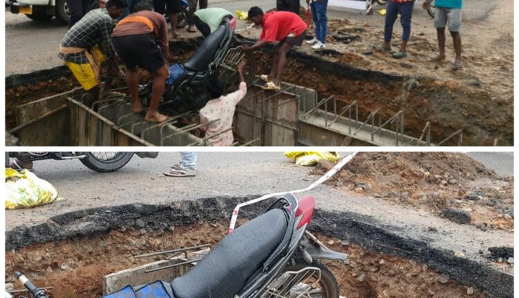 ଗୁଣପୁର(ସୁନିଲ୍ କୁମାର ସାବତ): ଗୁଣପୁର ସହରର ବାଇ ପାସ୍ ରାସ୍ତା ନିର୍ମାଣ ମନ୍ଥନ ଗତିରେ ଚାଲିଛି। ଫଳରେ ଯାନବାହାନ ଚଳାଚଳ ରେ ବହୁ ଅସୁବିଧାର ସମ୍ମୁଖୀନ ହେଉଥିବା ବେଳେ ପ୍ରତିଦିନ ଛୋଟ ବଡ ଦୁର୍ଘଟଣା ଘଟୁଥିବା ଦେଖିବାକୁ ମିଳୁଛି । ରାତ୍ରି ସମୟରେ ଠିକ୍ ଭାବେ ରାସ୍ତା ଦେଖା ଯାଉନଥିବା ଯୋଗୁଁ କଲଭର୍ଟ ଗର୍ତ୍ତ ଭିତରକୁ ବାରମ୍ବାର ମଟର ସାଇକେଲ ଚାଳକ ମାନେ ଖସି ଦୁର୍ଘଟଣାର ଶିକାର ହେଉଛନ୍ତି । ଗତ କିଛି ଦିନ ତଳେ ରାତିରେ ଏକ ମଟର ସାଇକେଲ ପଡିଯାଇଥିବା ଦେଖିବାକୁ ମିଳିଛି । ମଟର ସାଇକେଲ ରାସ୍ତା ନିର୍ମାଣ କରୁଥିବା କର୍ମଚାରୀମାନେ ବାହାର କରୁଥିବା ଦେଖିବାକୁ ମିଳିଥିଲା । ଖବର ନେବାରୁ ଜଣାପଡିଛି ଯେ ଗୁଡାରୀ ବ୍ଲକ ଢେପା ଗୁଡା ଅଞ୍ଚଳର ଜଣେ ଯୁବକ ତାଙ୍କ ସମ୍ପର୍କୀୟଙ୍କୁ ଆଣିବା ପାଇଁ ଗୁଣପୁର ରେଳ ଷ୍ଟେସନକୁ ରାତି ୨ ଘଣ୍ଟା ସମୟରେ ଯିବା ସମୟରେ ଏହିଭଳି ଦୁର୍ଘଟଣାର ଶିକାର ହୋଇଥିଲେ । କଲଭର୍ଟ ଗର୍ତ୍ତ ଚାରିପଟେ ଉପଯୁକ୍ତ ବେରିକେଟ ନ କରି ନାଲି ଫିତା ଲଗାଇ ଛାଡି ଦେଉଥିବା ଯୋଗୁଁ ଏହି ଭଲି ଦୁର୍ଘଟଣା ବାରମ୍ବାର ହେଉଥିବା ଅଭିଯୋଗ ହେଉଛି । ସୂଚନା ଯୋଗ୍ୟ ସେ ଏହି ରାସ୍ତା ୪ ଟିକିଆ କରିବା ସହ ମାଷ୍ଟର ଡ୍ରେନ୍ ନିର୍ମାଣ ନିମନ୍ତେ ପୂର୍ତ୍ତ ବିଭାଗ ପକ୍ଷରୁ ୧୬ କୋଟି ୩୦ ଲକ୍ଷ ଟଙ୍କାର ଟେଣ୍ଡର ଚୂଡ଼ାନ୍ତ ହୋଇଥିଲା । ଏହି ଟେଣ୍ଡର ବିଆରସି ନାମକ ଏକ ଆନ୍ଧ୍ର ଠିକା ସଂସ୍ଥା ପାଇଥିଲା କିନ୍ତୁ ନିର୍ଦ୍ଧାରିତ ସମୟ ସୀମା ସାରିବା ପରେ ମଧ୍ଯ କାର୍ଯ୍ୟ ଶେଷ ହୋଇ ନ ଥିବା ଯୋଗୁଁ ପୁନର୍ବାର ସମୟ ସୀମା ବଢାଇ ଚୁକ୍ତି କରାଯାଇଥିଲା ।