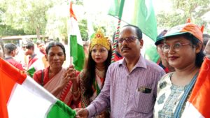 ନୁଆପଡ଼ା(ବିରବଲ ପ୍ରଧାନ): ଏବେ ସମଗ୍ର ଦେଶରେ ଅତ୍ୟନ୍ତ ଆନନ୍ଦ ଉଲ୍ଲାସର ସହିତ ହର ଘର ତ୍ରିରଙ୍ଗା ଉତ୍ସବ ପାଳିତ ହେଉଛି l ଆମ ରାଜ୍ୟରେ ମଧ୍ୟ ପ୍ରତି ଘରେ ତ୍ରିରଙ୍ଗା କାର୍ଯ୍ୟକ୍ରମରେ ଆଜି ନୂଆପଡା ସଦର ମହକୁମାରେ ଜିଲ୍ଲାପାଳ ମଧୁସୂଦନ ଦାଶଙ୍କ ନେତୃତ୍ୱରେ ଶହସ୍ରାଧିକ ଛାତ୍ରଛାତ୍ରି, ବିଭିନ୍ନ ବିଭାଗର ଅଧିକାରୀ ଏବଂ ଜନସାଧାରଣ ଏକ ବିଶାଳ ତ୍ରିରଙ୍ଗା ପଦଯାତ୍ରା ରେ ସହର ପରିକ୍ରମା କରିଥିଲେ l ସ୍ଥାନୀୟ ଷ୍ଟାଡ଼ିଅମ ପଡିଆରୁ ଏହି ଶୋଭାଯାତ୍ରାକୁ ଜିଲ୍ଲାପାଳ ସବୁଜ ପତାକା ହଲାଇ ଶୁଭାରମ୍ଭ କରିଥିଲେ l ସେଠାରୁ ଏହି ରାଲି ଭାରତ ମାତା ଏବଂ ଆମ ପ୍ରିୟ ଜାତୀୟ ପତାକା ତ୍ରିରଙ୍ଗାର ଜୟଧ୍ୱନି ଦେଇ ଅତ୍ୟନ୍ତ ଆନନ୍ଦ ଉତ୍ସାହର ସହିତ ଏକତା ଛକ ପର୍ଯ୍ୟନ୍ତ ଯାଇ ପୁଣି ଜିଲ୍ଲାପାଳଙ୍କ କାର୍ଯ୍ୟାଳୟ ପରିସରକୁ ଆସିଥିଲା l